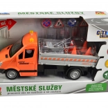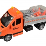 Ten pomarańczowy samochód ciężarowy z platformą ładunkową i odchylanymi najazdami oferuje dzieciom autentyczne doświadczenie pracy miejskich służb i robót drogowych. Napęd bezwładnościowy gwarantuje płynną jazdę bez baterii, a realistyczne detale i dodatki wspierają rozwój wyobraźni oraz motoryki małej.