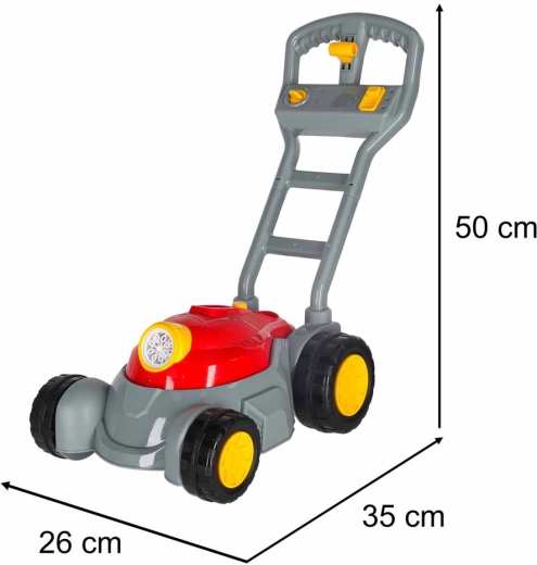 Podczas pchania kosiarka sama wypuszcza wiele baniek mydlanych, zamieniając zwykły spacer w wesołą przygodę.