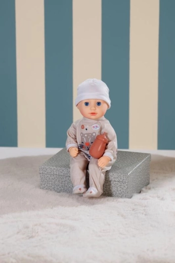 W zestawie znajduje się butelka do karmienia oraz beżowe śpioszki z tygryskiem i czapeczka. Idealny komplet do zabaw w odgrywanie ról.