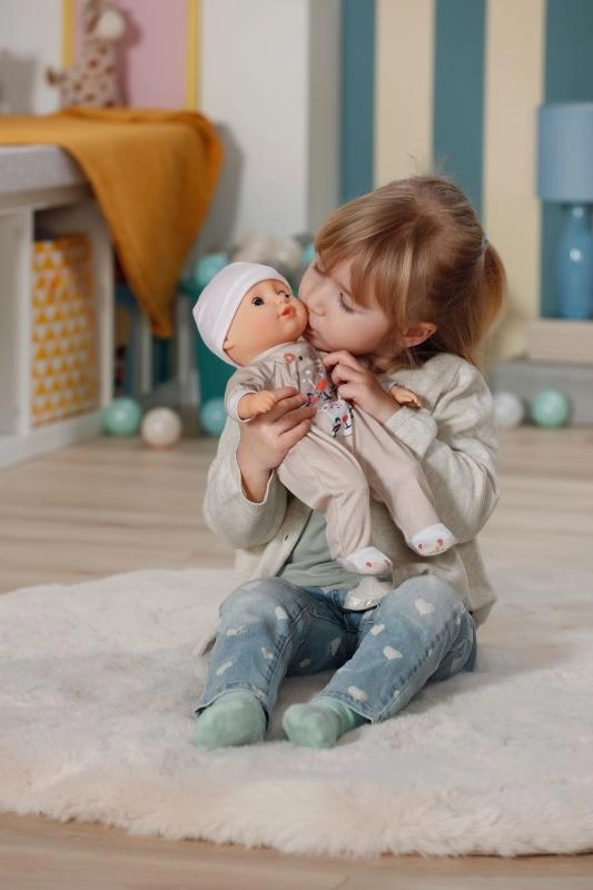 Delikatne materiałowe ciałko lalki jest przyjemne w dotyku i idealne dla najmłodszych dzieci. Wspiera więź emocjonalną i spokojne zasypianie.