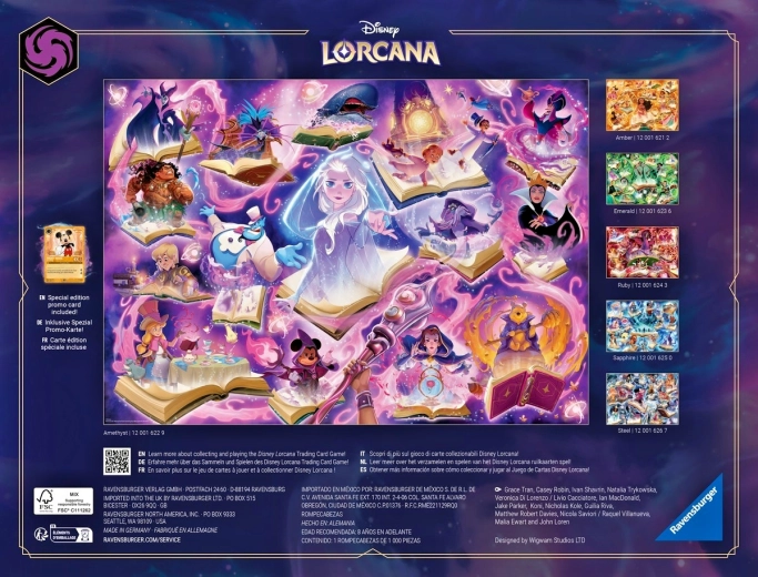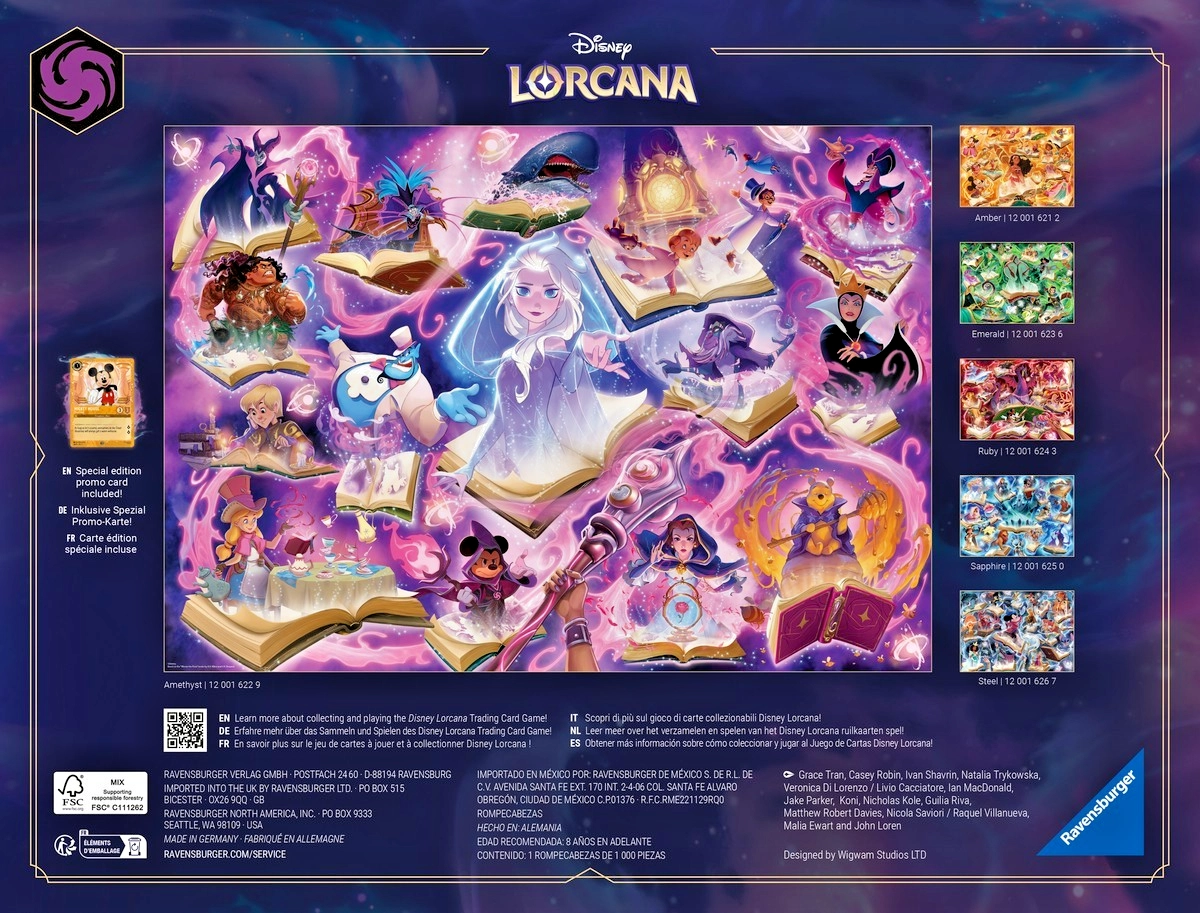 Odkryj magiczny świat DISNEY LORCANA z wysokiej jakości puzzlami RAVENSBURGER składającymi się z 1000 elementów. Precyzyjny wykrój, trwałe elementy i zachwycający motyw „Glimmers of the Realm: Ametyst” zapewnią relaksujące układanie, ostre detale i idealne dopasowanie każdego elementu.