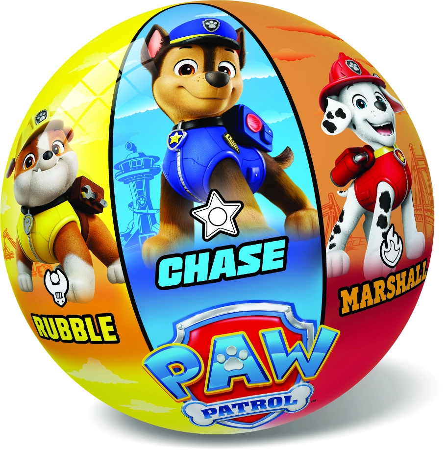 Kolorowa dziecięca piłka z motywami Psi Patrol idealna do zabawy w domu i na zewnątrz. Średnica 23 cm, gładka plastikowa powierzchnia i wesołe nadruki ulubionych bohaterów, takich jak Chase, Marshall, Skye, Zuma i Rocky. Świetna do rzucania, łapania i lekkiego kopania.