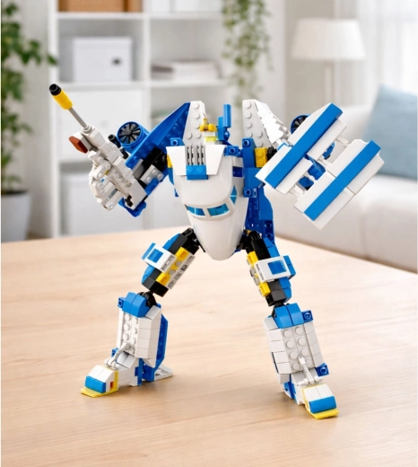 Z 417 elementów zbudujesz szczegółowy samolot pasażerski z otwieranymi częściami lub dynamicznego robota ze stawami. Podwójna porcja zabawy bez potrzeby dokupowania dodatkowych zestawów.