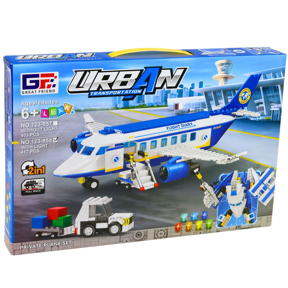 Odkryj zestaw konstrukcyjny 2w1, z którego zbudujesz szczegółowy samolot pasażerski lub ruchomego robota. W opakowaniu znajdziesz 417 elementów, efekty świetlne z bateriami w zestawie oraz mechanizm jazdy na pchnięcie dla jeszcze bardziej realistycznej zabawy. Solidne elementy z wysokiej jakości plastiku i czytelna instrukcja zapewniają stabilną konstrukcję oraz długie godziny kreatywnej zabawy dla dzieci od 6 lat.