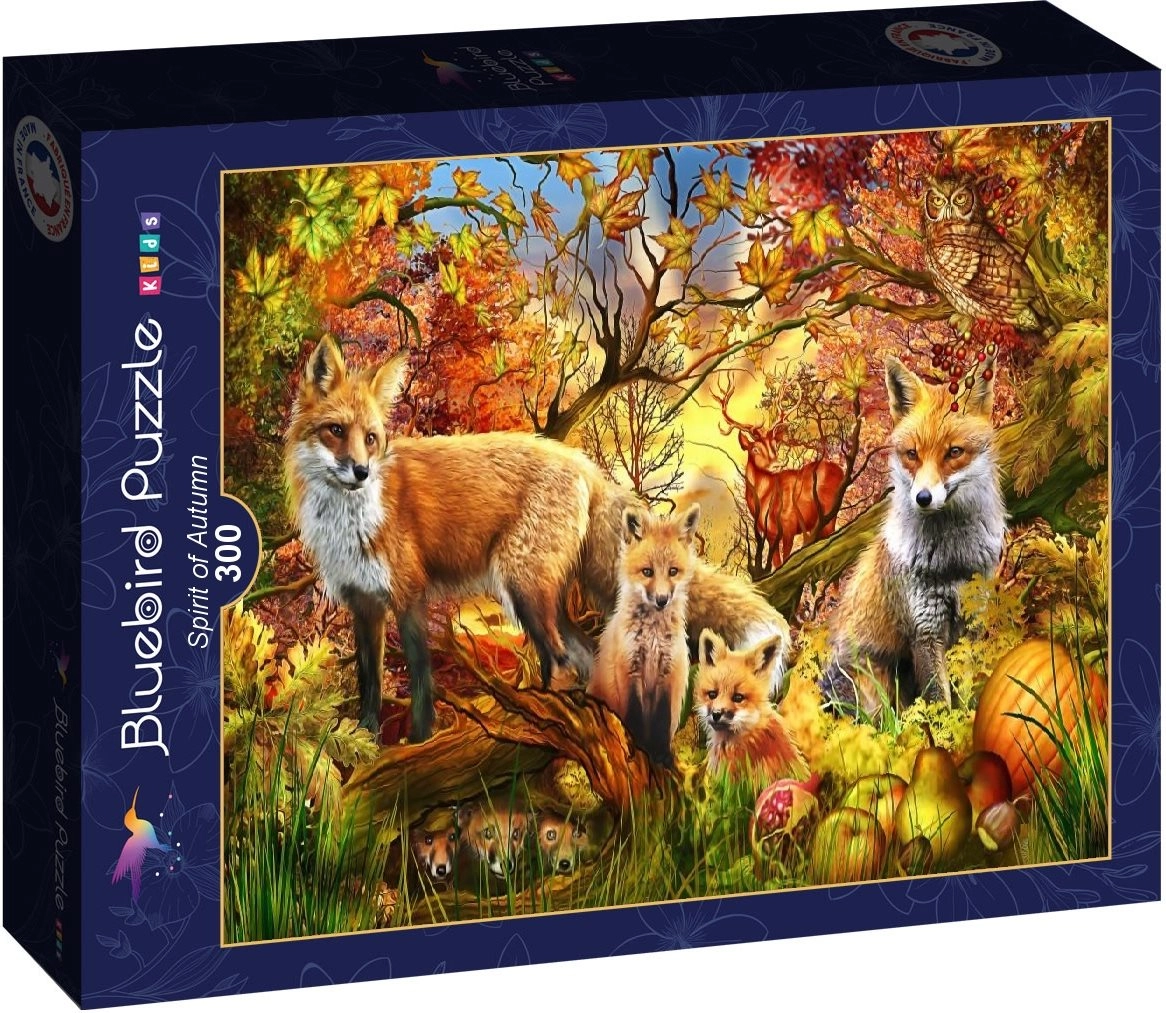Odkryj magię układania z puzzlami BLUEBIRD Duch jesieni o 300 elementach, które zachwycają urzekającym motywem i wysoką jakością wykonania. Idealne do relaksu, rozwijania koncentracji oraz wspólnych chwil z rodziną. Po ułożeniu puzzle mają wymiary około 47,8 × 34,2 cm, dzięki czemu świetnie nadają się do oprawienia lub wyeksponowania.