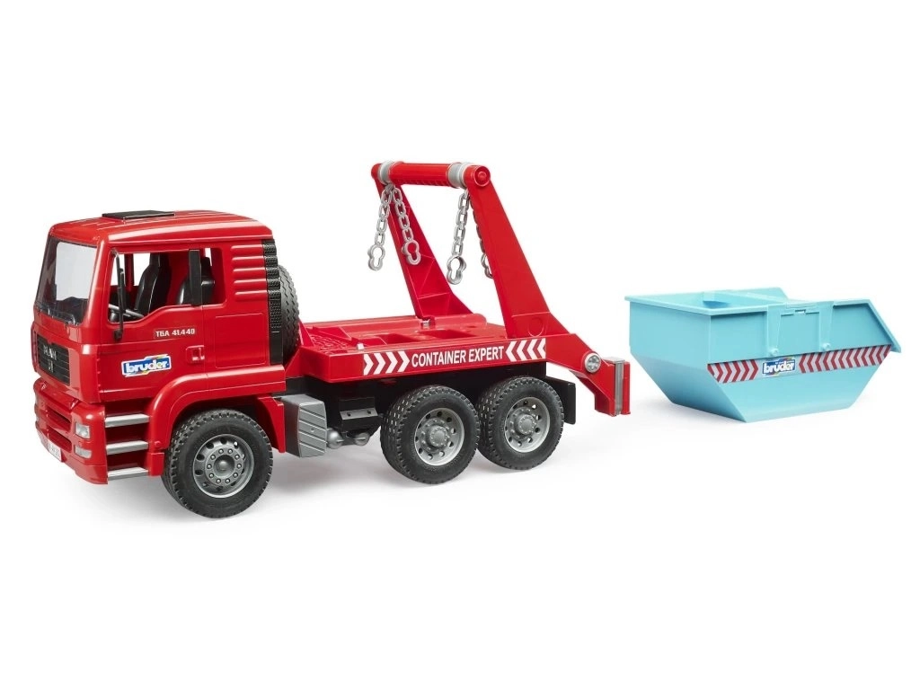 Praktyczny system z łańcuchami pozwala łatwo podnieść lub odłożyć kontener, dzięki czemu pojazd może od razu ruszać na kolejne „zlecenie”. Idealny do dynamicznej zabawy na budowie.