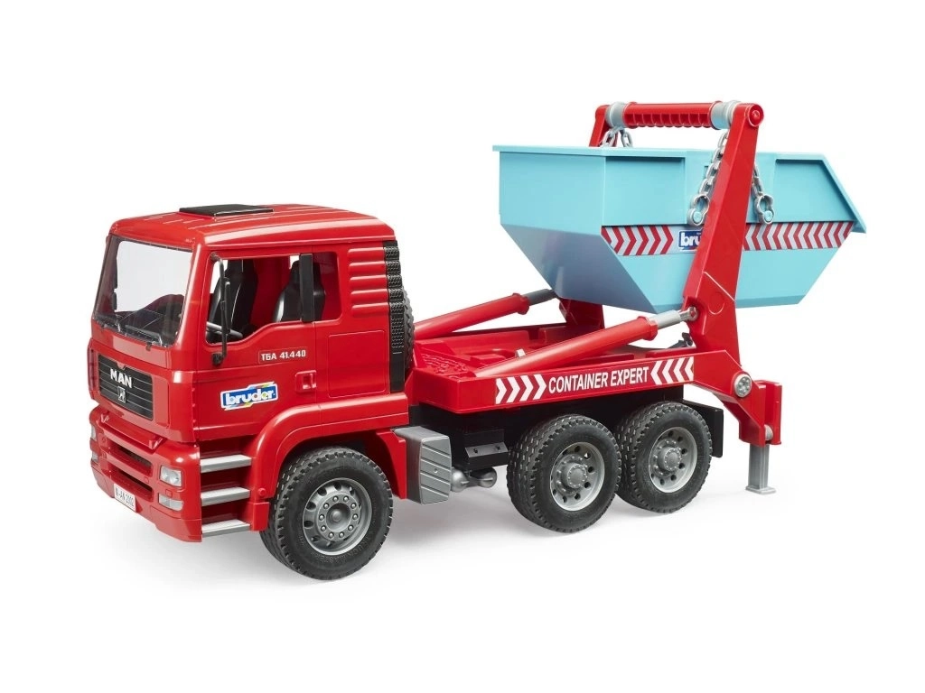 Ten szczegółowo opracowany model MAN TGA wprowadza do dziecięcego świata autentyczne funkcje prawdziwych pojazdów użytkowych. Kontener można załadować i rozładować jednym ruchem, zwolnić łańcuchy i bezpiecznie odłożyć ładunek na miejscu. Odchylana kabina odsłania blok silnika i wspiera realistyczną zabawę.