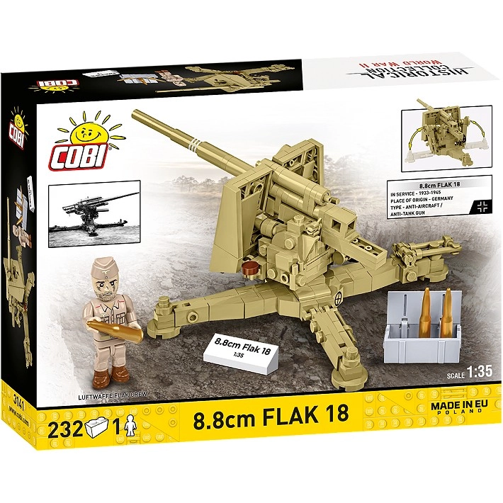 Ciesz się budową legendarnej „osiemdziesiątki ósemki”, która w czasie II wojny światowej zasłynęła celnością i siłą. Ten model inspirowany użyciem w Afryce Północnej oferuje wysoki poziom detali: od krzyżowej lawety, przez tarczę ochronną, po działające elementy sterujące. Dzięki trwałym nadrukom bez naklejek zestaw na długo zachowa świetny wygląd.