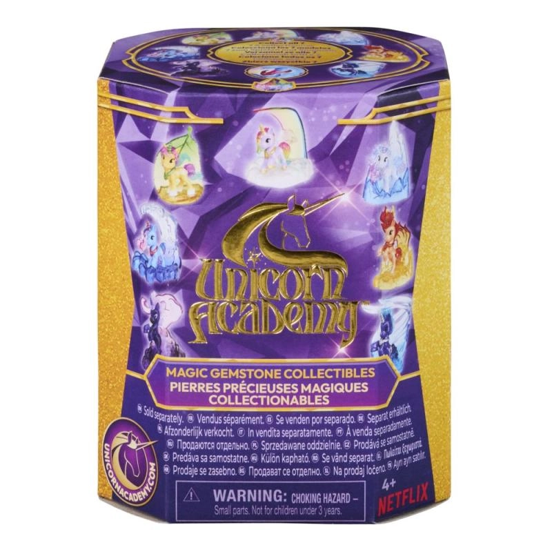 W każdym tajemniczym pudełku czeka jednorożec Magic Gemstone inspirowany hitami z Netflixa i książek – na przykład Wildstar, Leaf, River, Cinder, Glacier, Storm lub specjalny Grim, który świeci w ciemności. Figurki zachwycają precyzyjnymi detalami, błyszczącym wykończeniem oraz dekoracyjnymi podstawkami z motywami wody, ognia, lodu, chmur, tęczy lub liści.