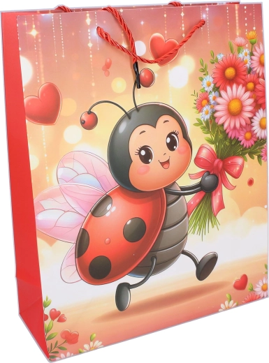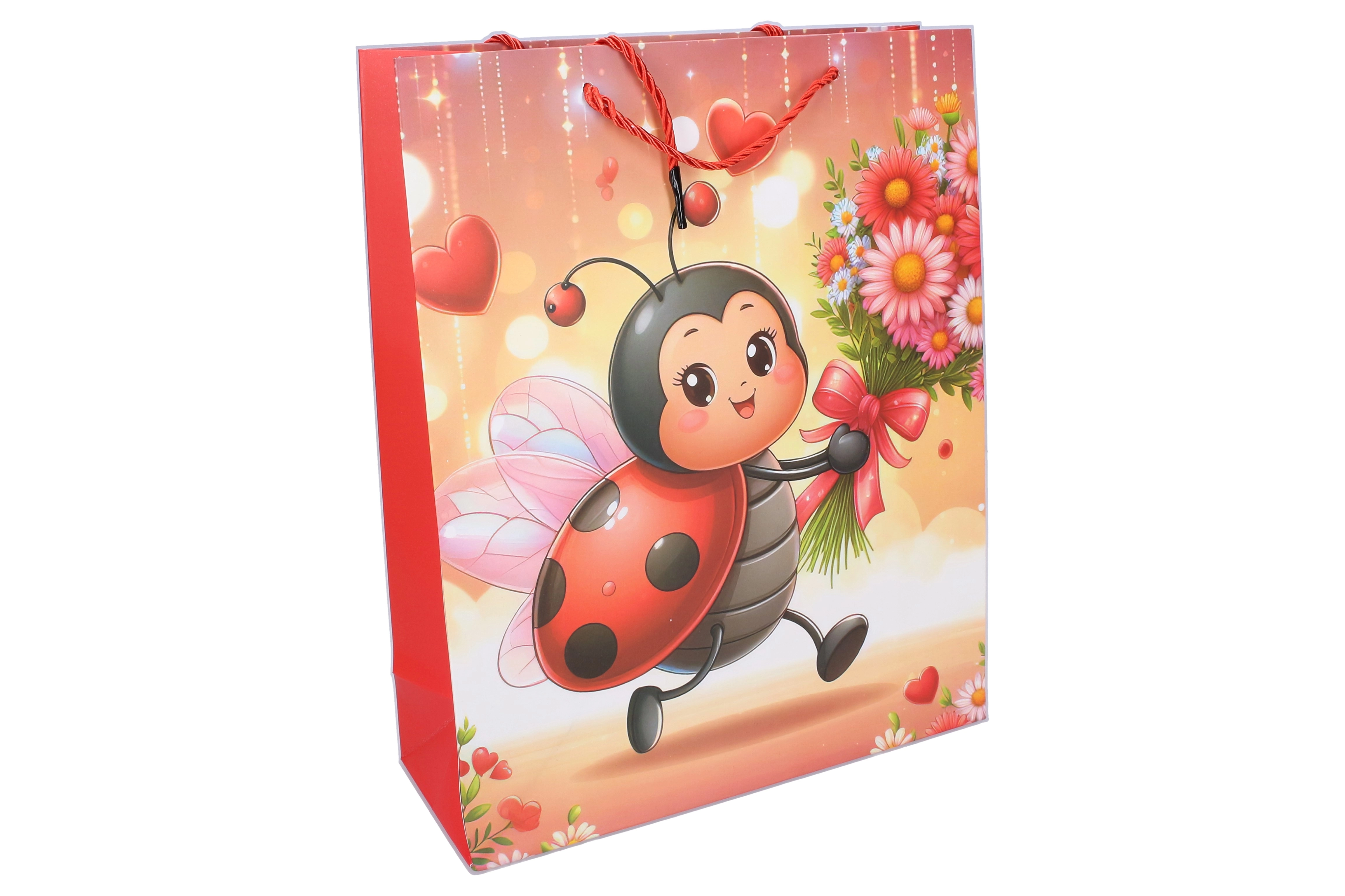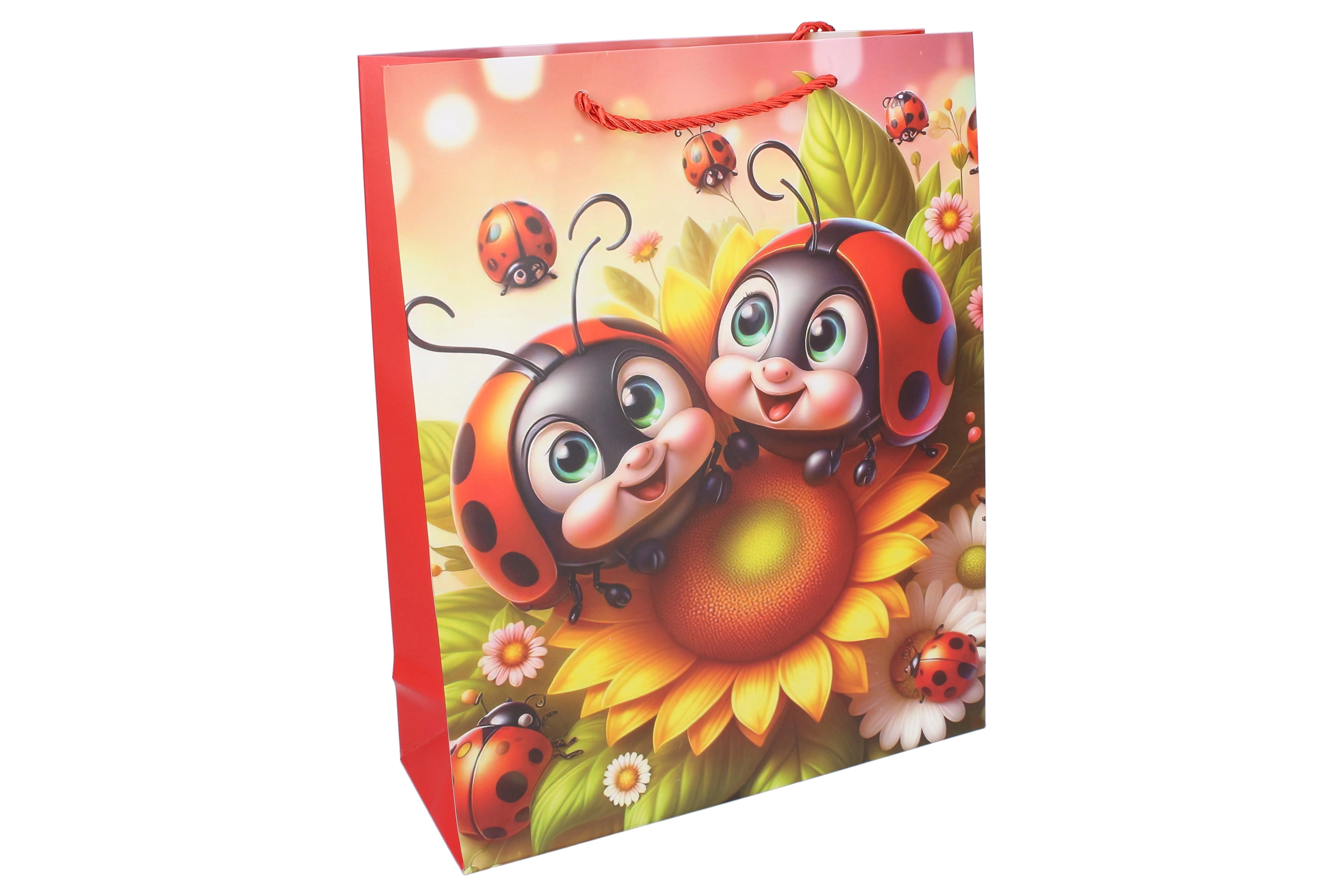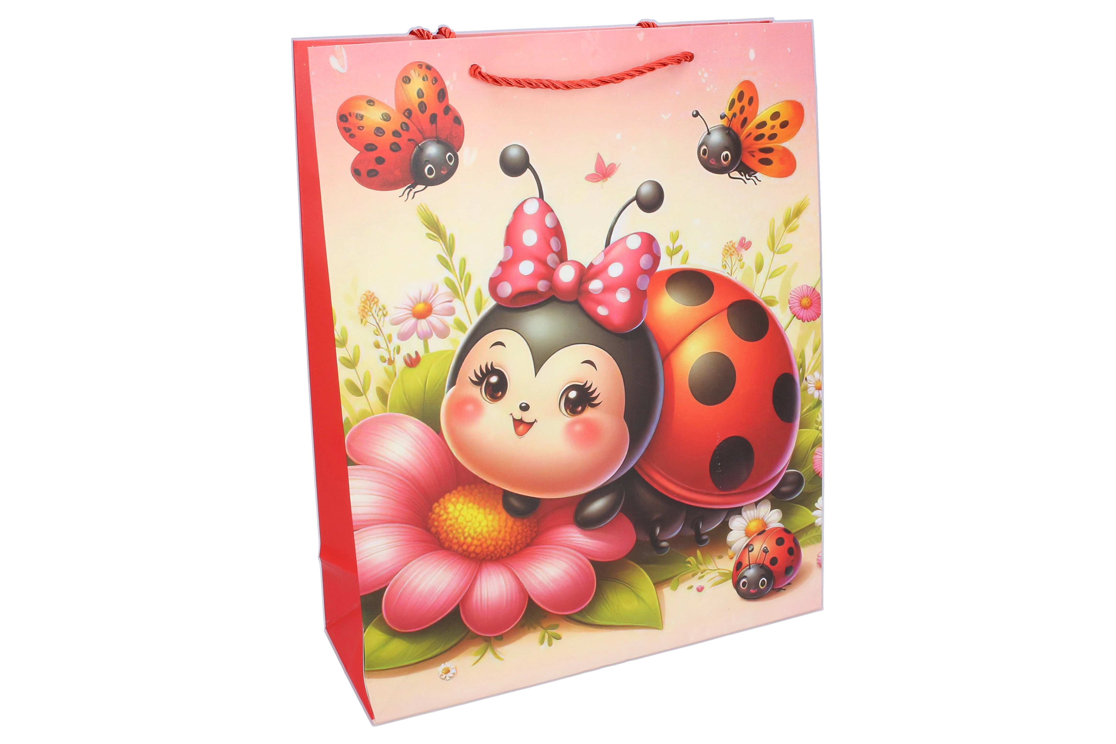 Torba jest dostępna w 4 radosnych wariantach (np. biedronka i inne dziecięce motywy), dzięki czemu z łatwością dopasujesz wygląd do okazji i zainteresowań dziecka. Eleganckie wykończenie nadaje prezentowi reprezentacyjny wygląd bez konieczności skomplikowanego pakowania.