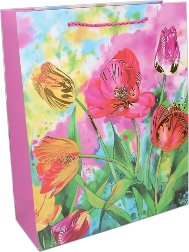 Dodaj swoim prezentom szyku dzięki wysokiej jakości papierowej torebce w rozmiarze M. Błyszczący nadruk w kwiaty oraz mocny sznurkowy uchwyt sprawiają, że Twój upominek będzie wyglądał świetnie i jednocześnie zostanie bezpiecznie przeniesiony. Torebka nadaje się do całorocznego użytku – od urodzin, przez święta, po drobne upominki.