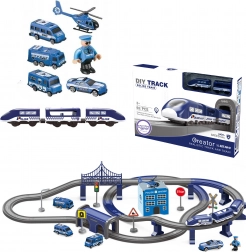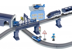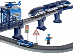 Ta szczegółowo wykonana policyjna kolejka łączy ulubione światy dzieci – pociągi, auta, helikoptery i policję. Dzięki bogatemu zestawowi elementów zbudujesz aż 6 różnych wariantów torów, w tym dwupoziomowe prowadzenie, most i tunel. Magnetyczne złącza wagonów ułatwiają obsługę, a lokomotywa z napędem zapewnia płynną jazdę.