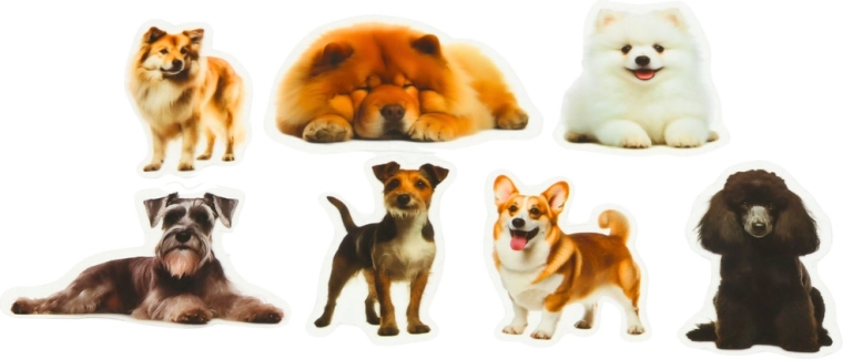Realistyczne, kolorowe nadruki psich ras nadają dekoracjom profesjonalny i atrakcyjny wygląd.
