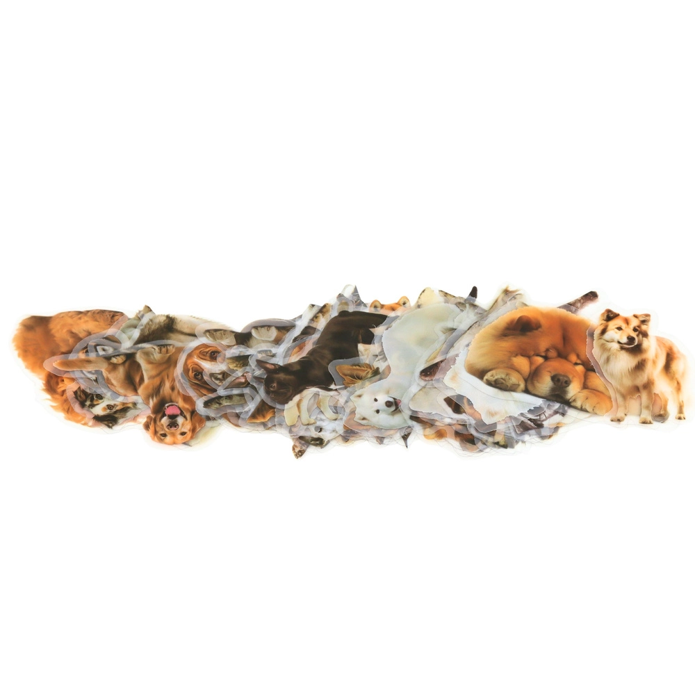 Odkryj kreatywny zestaw 50 naklejek z motywami psów o wielkości ok. 6 cm. Naklejki mają przezroczyste tło i błyszczącą powierzchnię, dzięki czemu doskonale stapiają się z każdym podkładem. Idealne do dekoracji zeszytów, planerów, albumów i prezentów oraz do tworzenia z dziećmi.