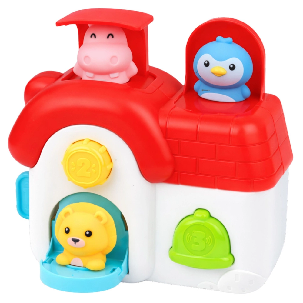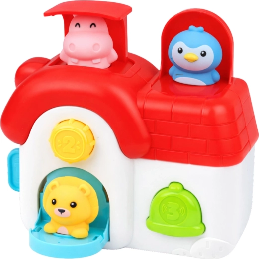 Uroczy interaktywny domek dla najmłodszych wspiera małą motorykę, logiczne myślenie oraz rozumienie przyczyna–skutek. Trzy proste aktywności – naciskanie i obracanie elementów – odkrywają ukryte zwierzątka i bawią dzieci kolorowym wykonaniem oraz sympatycznym designem. Kompaktowe wymiary, bezpieczne materiały i kształt idealny do małych rączek.