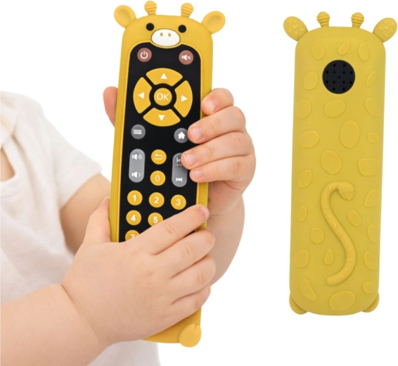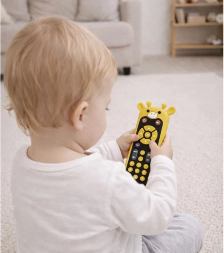 Interaktywny pilot dla najmłodszych w formie wesołej żyrafy łączy zabawę z nauką. Po naciśnięciu dużych, czytelnych przycisków rozbrzmiewają melodie, dźwięki i słowa mówione, zapala się kolorowe światło, a dziecko naturalnie poznaje liczby i języki obce. Ergonomiczny kształt zachęca do chwytania i eksplorowania, a miękki silikonowy gryzak pomaga ukoić dziąsła podczas ząbkowania.