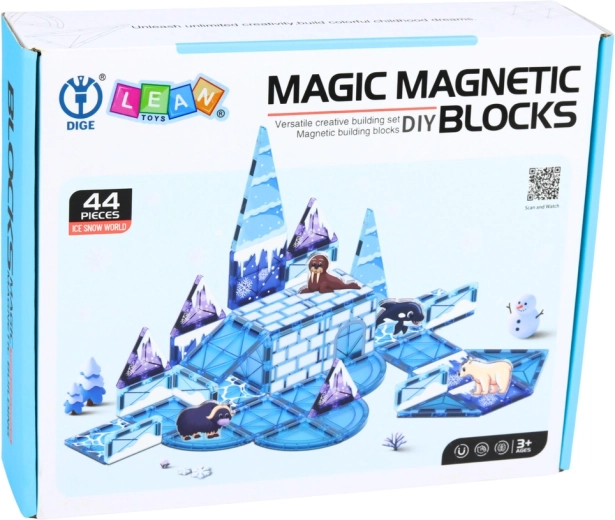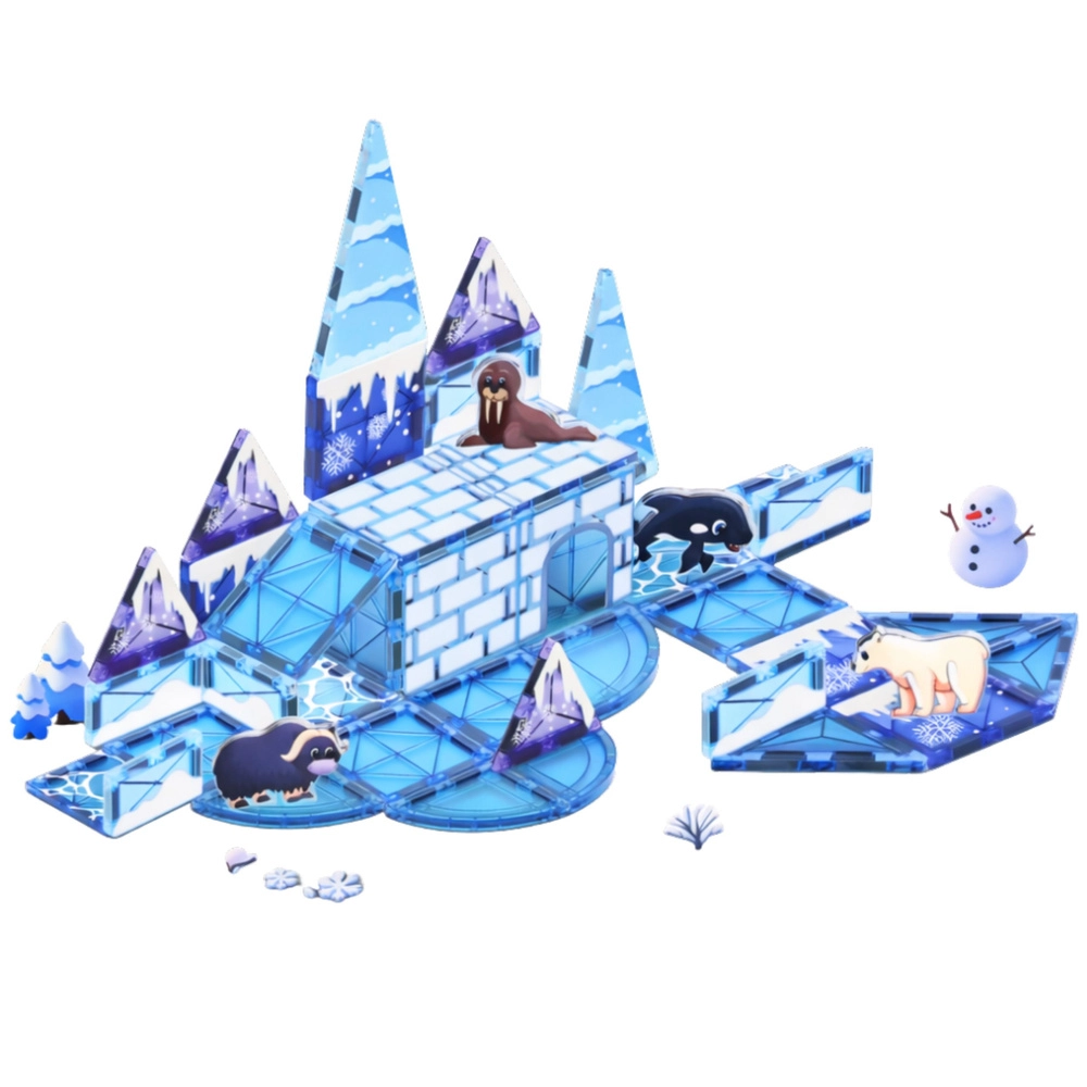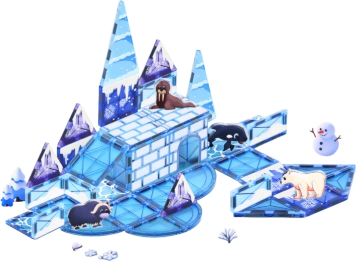 Odkryj kreatywny świat Arktyki z magnetycznym zestawem zawierającym 44 elementy. Przezroczyste niebieskie panele łatwo łączą się dzięki silnym magnesom, a dzieci zbudują lodowe zamki, mosty i rampy. W komplecie są figurki polarnych zwierząt, które wspierają wyobraźnię, małą motorykę i myślenie przestrzenne.