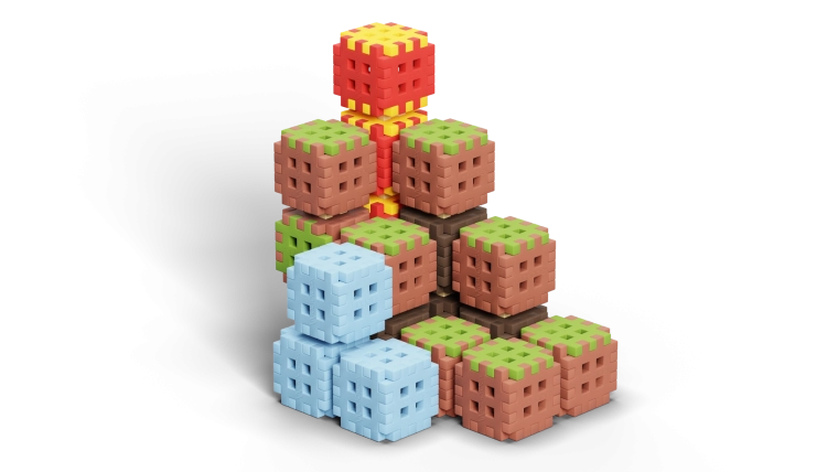 Klocki z wielostronnymi zamkami umożliwiają solidne łączenie ze wszystkich stron. Buduj teren, wieże i schodkowe struktury, a w każdej chwili przebuduj je według własnej wyobraźni.