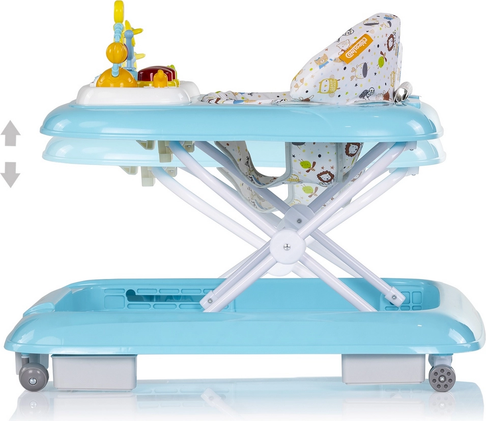 Interaktywne chodziki Chipolino Baby Steps w kolorze niebieskim wspierają pierwsze kroki Twojego maluszka i zmieniają je w bezpieczną oraz zabawną aktywność. Oferują regulowaną wysokość w 3 pozycjach, miękkie siedzisko z wysokim oparciem oraz panel zabaw z melodiami, światłami i przyciskami wspierający rozwój zmysłów i małej motoryki. Stabilna konstrukcja, 6 antypoślizgowych blokad i 4 kółka (2 obrotowe 360°) zapewniają pewność przy każdym kroku.