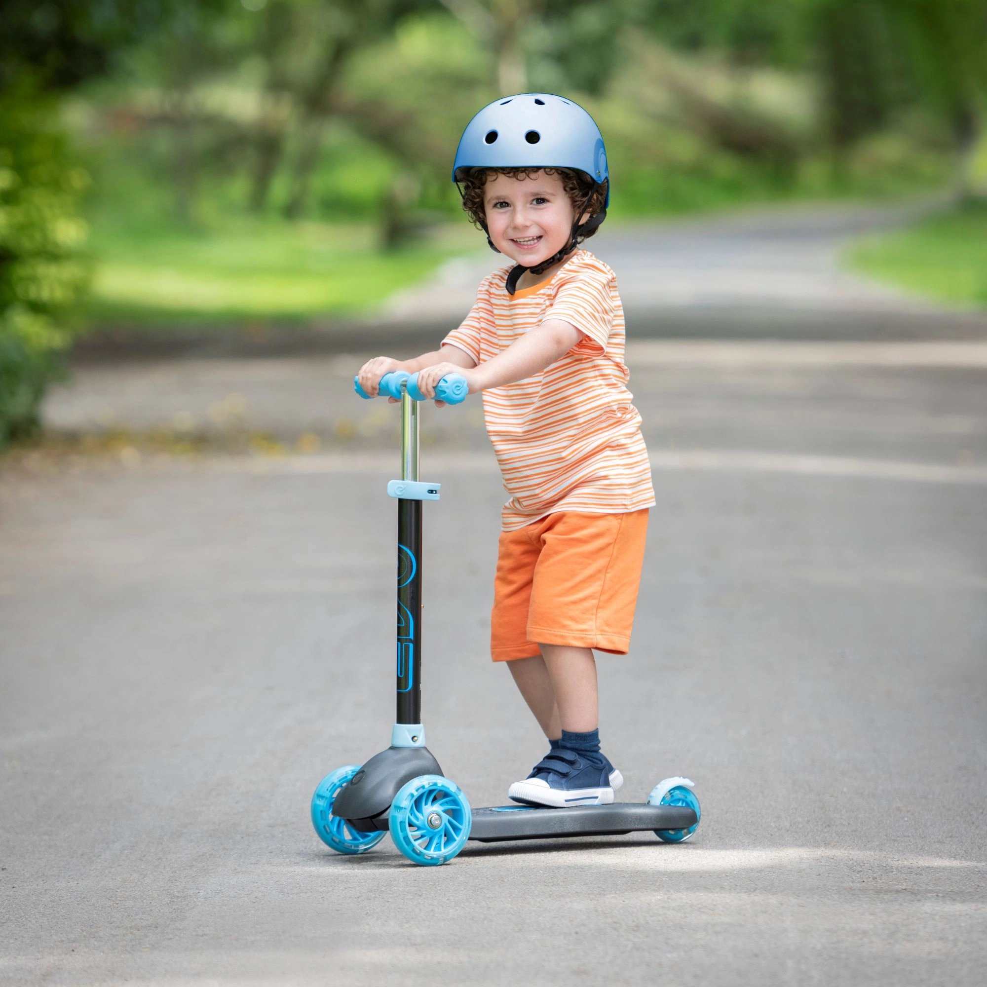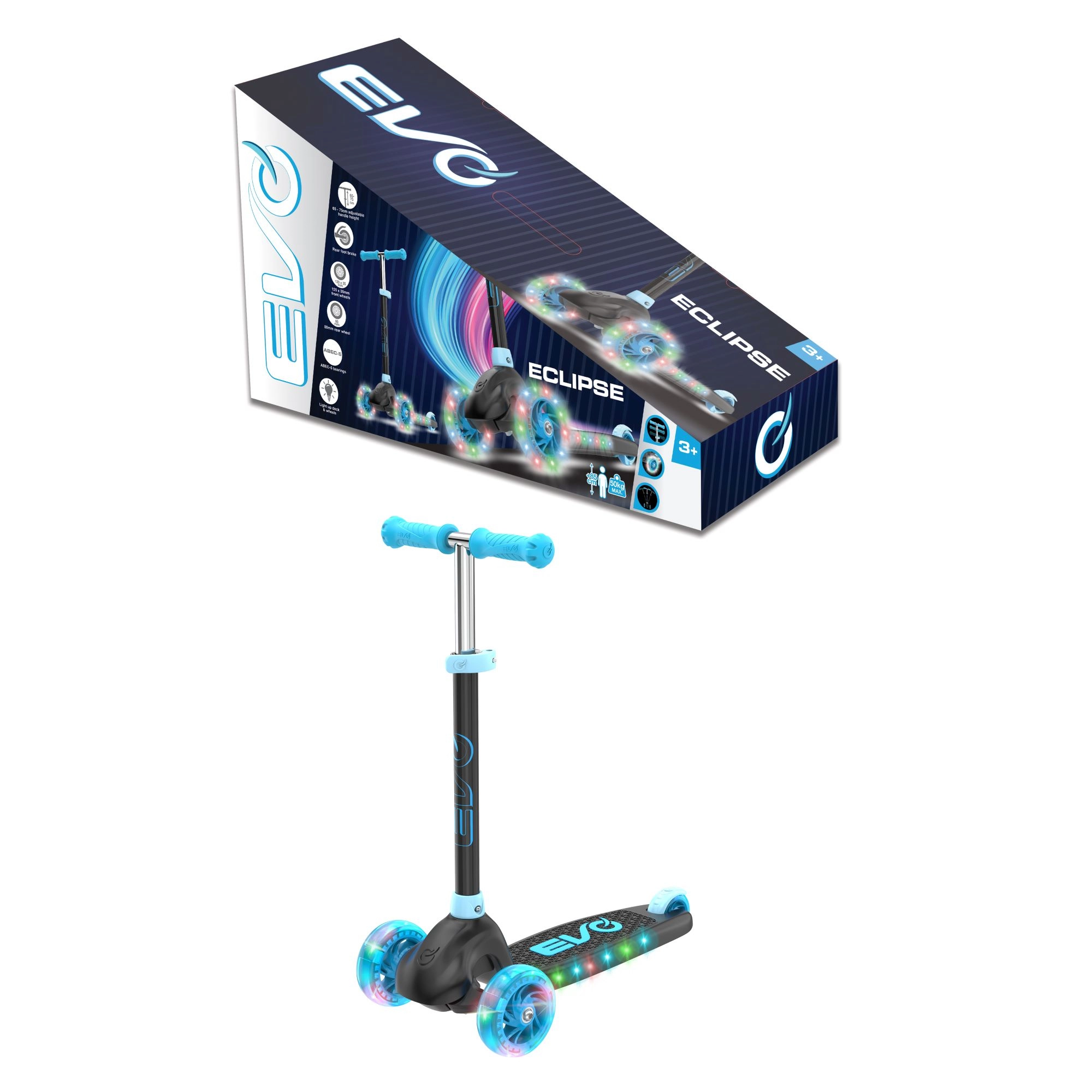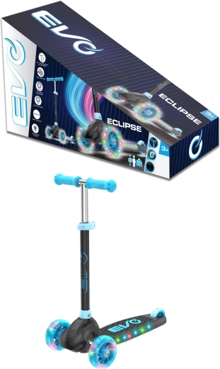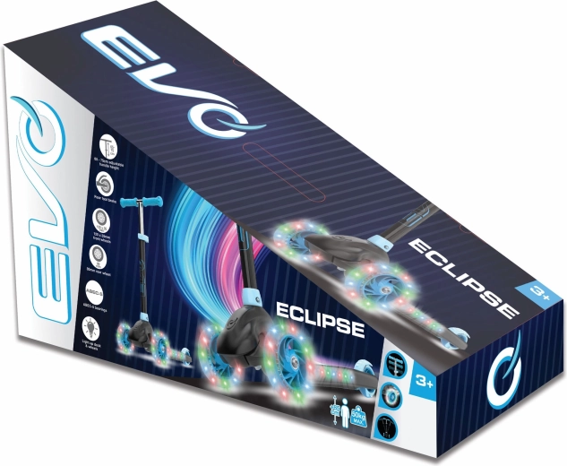 Dziecięca trójkołowa hulajnoga EVO Eclipse zapewnia stabilną i pełną zabawy jazdę dla małych użytkowników już od 3 lat. Dzięki dwóm przednim kołom, regulowanej wysokości kierownicy oraz świecącym kołom i podestowi dzieci bezpiecznie cieszą się każdą przejażdżką, jednocześnie rozwijając równowagę i koordynację.