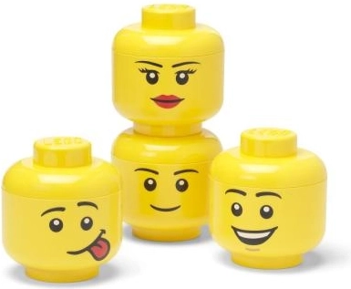 Praktyczny zestaw czterech mini głów do przechowywania w kształcie ikonicznej głowy ludzika LEGO do przejrzystego porządkowania drobiazgów. Dzięki kompaktowym wymiarom są idealne na klocki LEGO, małe zabawki czy słodycze i świetnie sprawdzą się także w biurze. Możliwość układania w stos, kompatybilność z biurkowymi pudełkami LEGO z szufladą oraz bezpieczny materiał bez BPA, ftalanów i PVC gwarantują wygodne i bezpieczne użytkowanie.