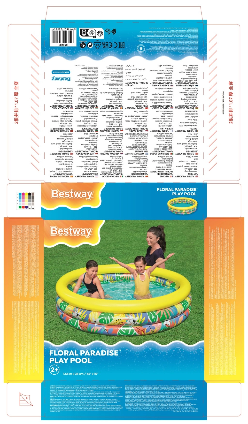 Rozjaśnij lato nadmuchiwanym basenem Floral Paradise dla dzieci od 2 lat. Trójkomorowa konstrukcja ze stabilnymi nadmuchiwanymi pierścieniami, zaworami bezpieczeństwa i wytrzymałym PVC zapewnia bezpieczną wodną zabawę. Dzięki szybkiej instalacji, kompaktowym wymiarom po spuszczeniu powietrza oraz radosnemu tropikalnemu designowi jest idealny do każdego ogrodu.