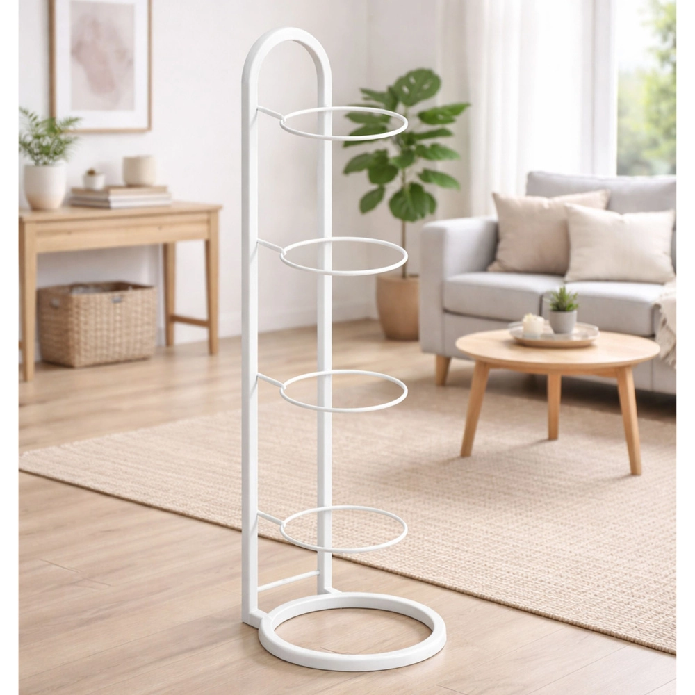Zachowaj porządek w sprzęcie sportowym dzięki smukłemu stojakowi z 4 oddzielnymi pierścieniami. Stabilna okrągła podstawa i solidna stal gwarantują pewność przy codziennym użytkowaniu – w holu, pokoju zabaw, domowej siłowni, szkole czy klubie. Biały kolor łatwo komponuje się z nowoczesnymi wnętrzami.
