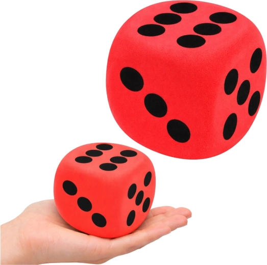 Ta duża piankowa kostka zapewnia cichą i bezpieczną zabawę w grach stołowych i ruchowych. Dzięki lekkiej i wytrzymałej piance zachowuje kształt i nadaje się także dla najmłodszych dzieci. Kontrastowe kropki są dobrze widoczne, więc dzieci łatwo rozpoznają liczby.