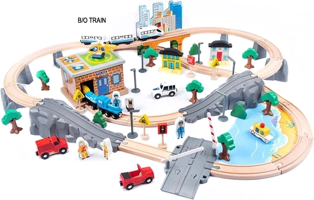 Odkryj zabawę i naukę w jednym dzięki drewnianej kolejce na baterie z 95 elementami, idealnej dla dzieci od 3 lat. Elektryczna lokomotywa na baterię AA realistycznie jeździ po torach, magnetyczne złącza umożliwiają łatwe łączenie wagoników, a bogate akcesoria, takie jak mosty, drzewa, budynki i znaki drogowe, wspierają wyobraźnię i rozwój motoryki. Wykonana z wysokiej jakości drewna i pomalowana ekologicznymi farbami, spełnia normy CE i EN 71 dla bezpiecznej zabawy.