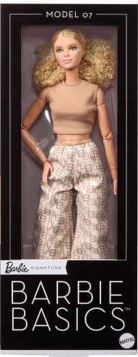 Lalka BARBIE Signature Basics Model 07 celebruje minimalizm i nowoczesną elegancję. Delikatna twarz z niebieskimi oczami, subtelnym makijażem i jasną cerą podkreśla jej klasyczne piękno. Blond kręcone włosy są ułożone w prostą fryzurę, która współgra z czystą estetyką całej serii.