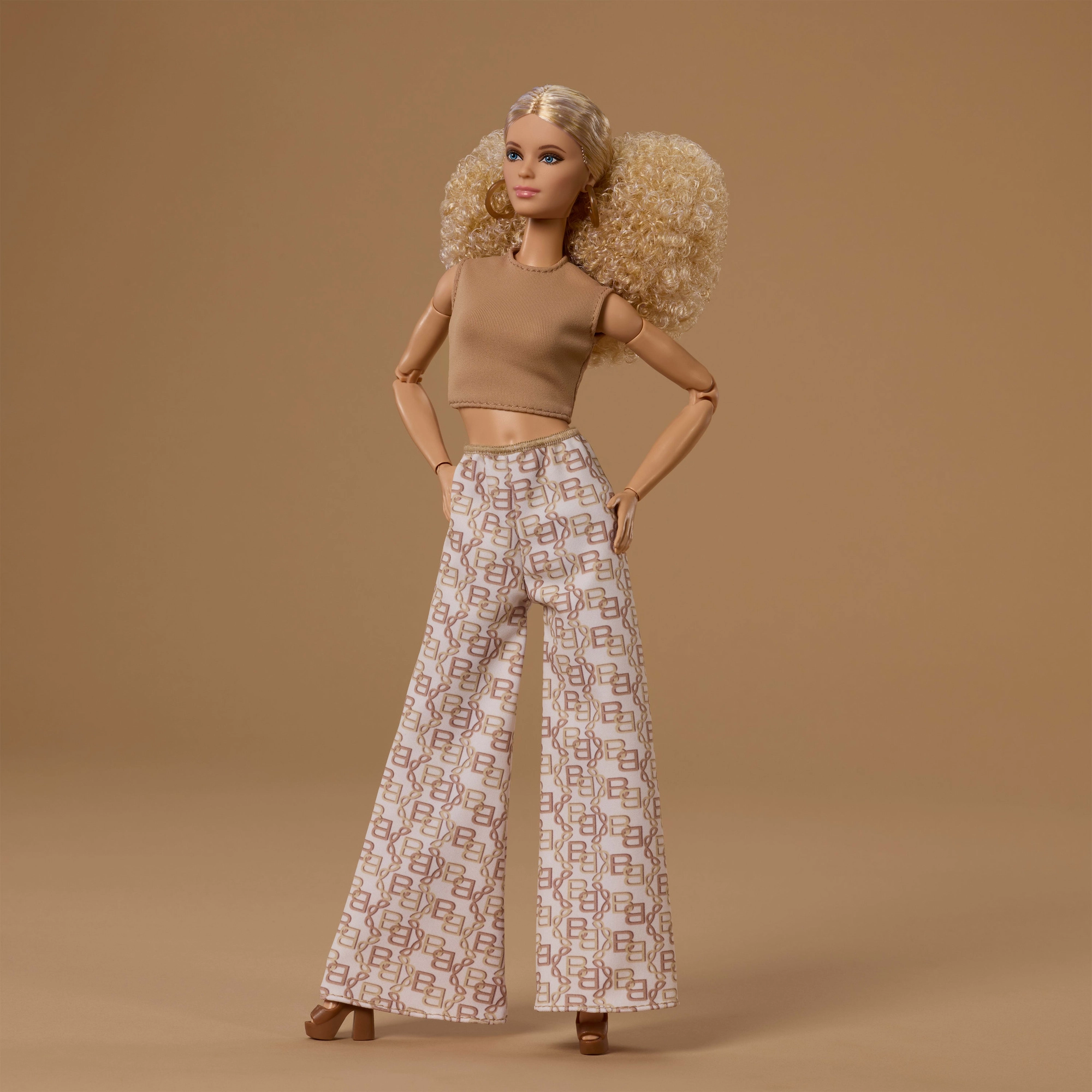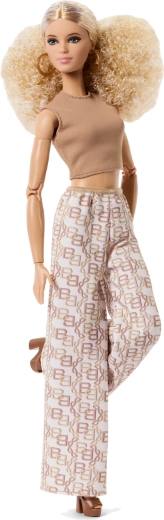 Styl utrzymany w neutralnych, ponadczasowych odcieniach – jasnobrązowym, białym i złotym. Lalka ma elegancki top i długie, szerokie spodnie, które świetnie łączą się z innymi dodatkami BARBIE. Dzięki standardowej wysokości ok. 29 cm jest kompatybilna z większością dodatków i mebli BARBIE.