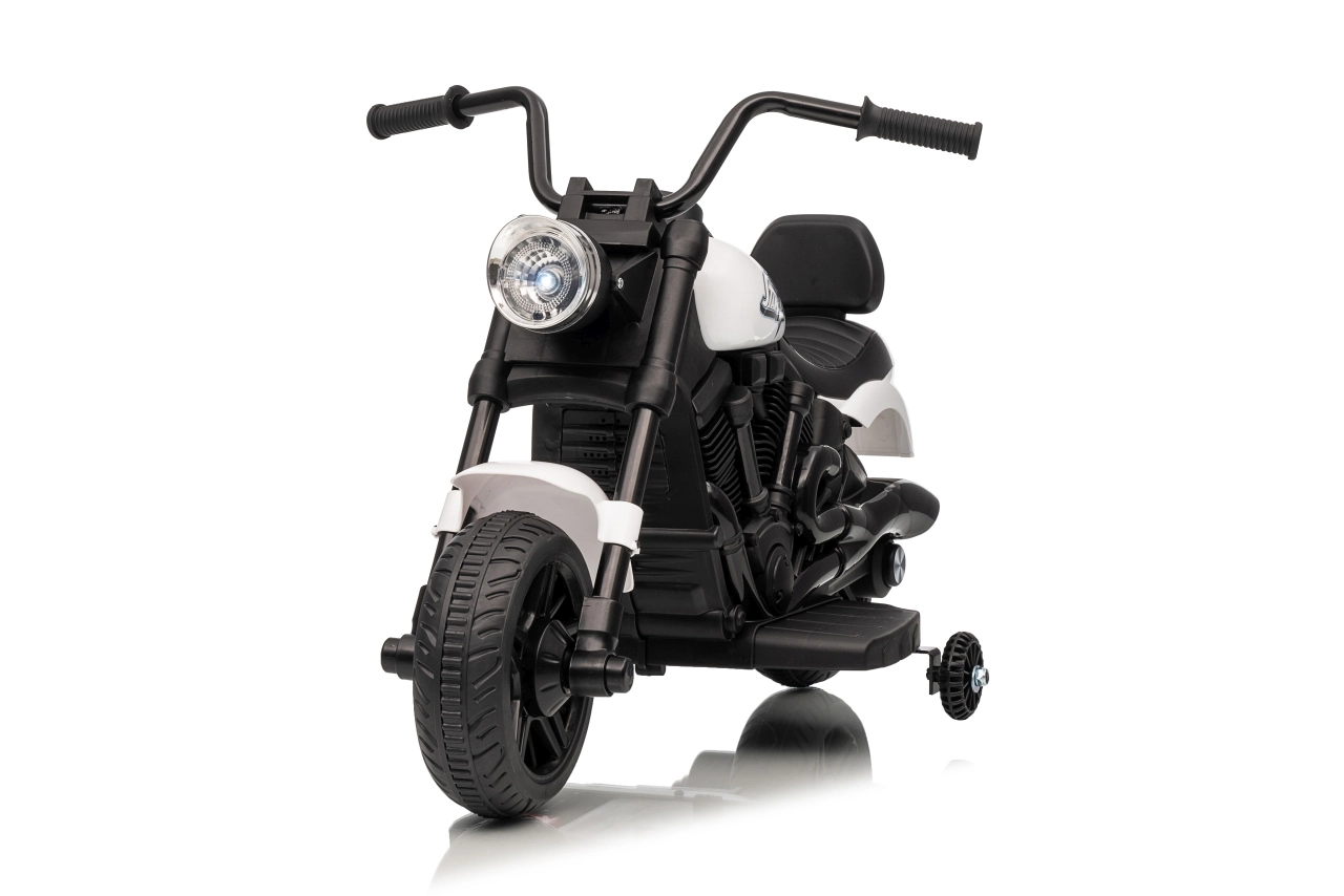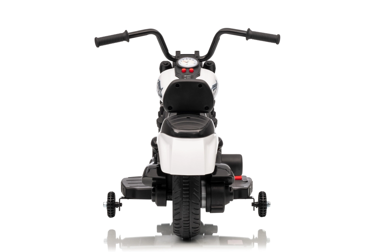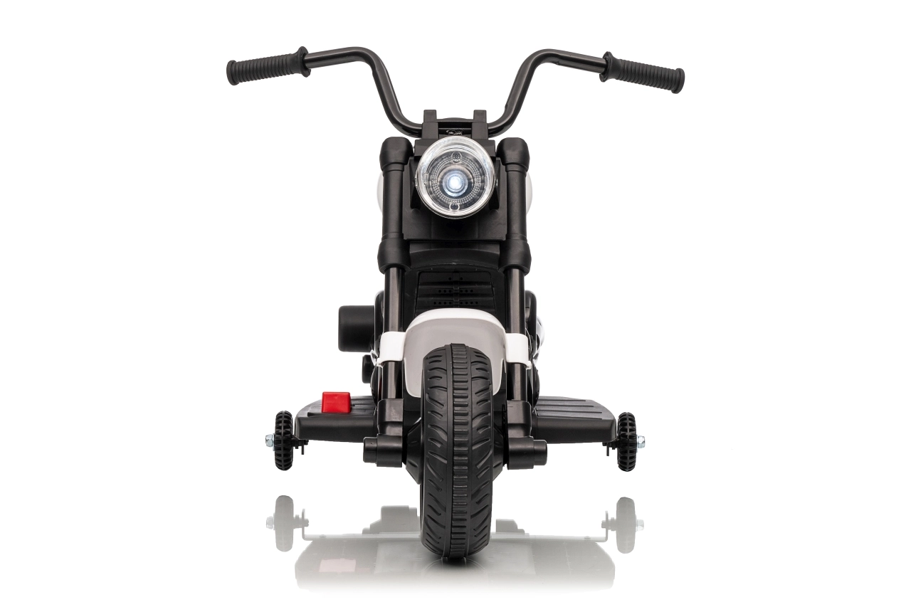 Stylowy dziecięcy motocykl elektryczny w białym kolorze zapewnia bezpieczną zabawę dla małych kierowców. Dzięki silnikowi 30 W, akumulatorowi 6 V 4,5 Ah, bocznym kółkom stabilizującym oraz przedniemu światłu LED dzieci mogą cieszyć się jazdą w domu i na zewnątrz. Wygodne siodełko i płynny start gwarantują komfort i pewność podczas pierwszych przejażdżek.