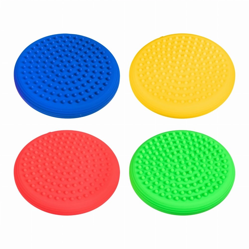 - Praktyczny zestaw 4 szt.: kolorowe dyski do zróżnicowanych ćwiczeń i zabaw.