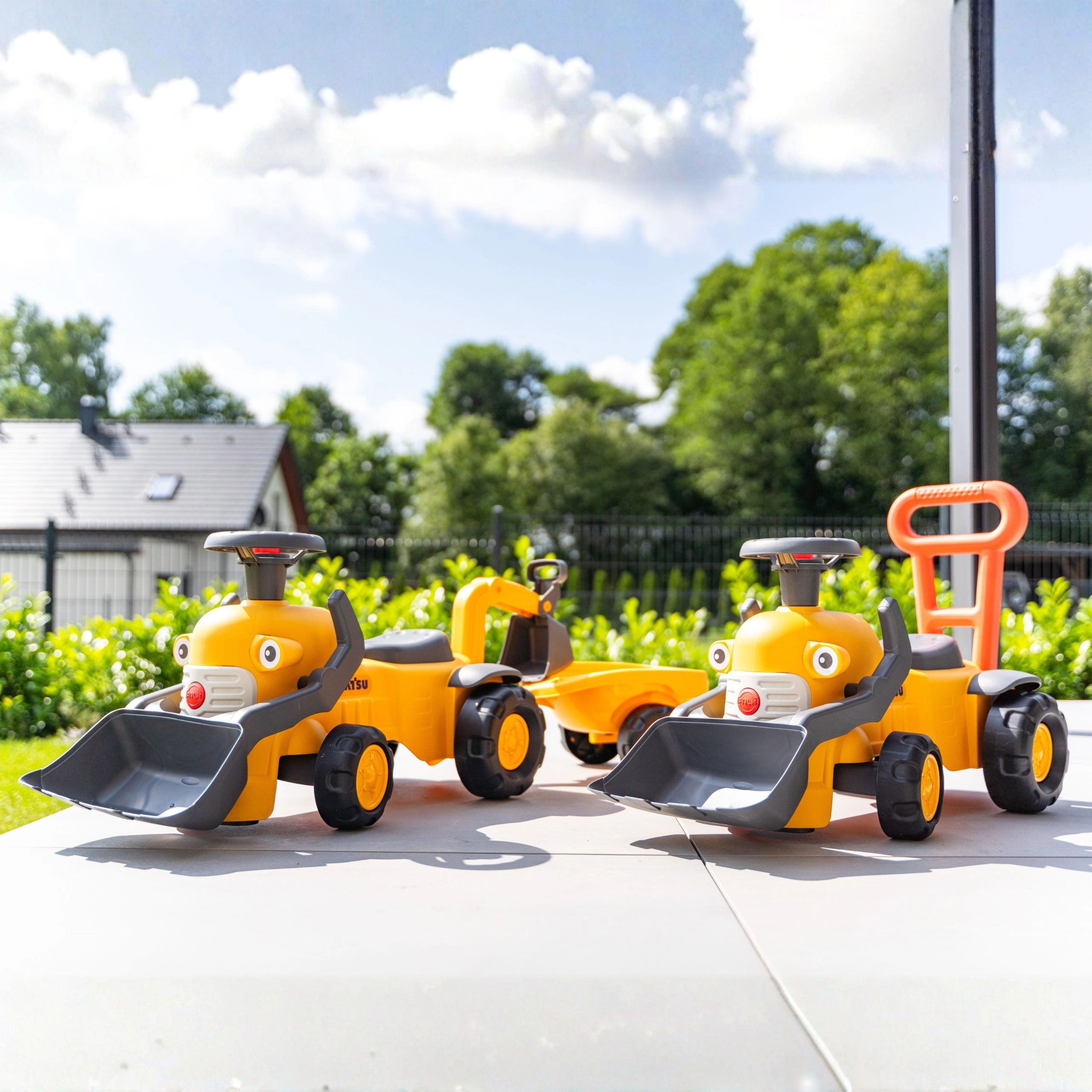 Uroczy jeździk traktor licencjonowany marką KOMATSU dla dzieci od 1 do 3 lat zachwyca funkcjonalną przednią łyżką, klaksonem na kierownicy i stabilną konstrukcją. Wyprodukowano w 100% we Francji z co najmniej 90% plastiku z recyklingu – mądry i ekologiczny wybór do bezpiecznej zabawy w domu i na zewnątrz.