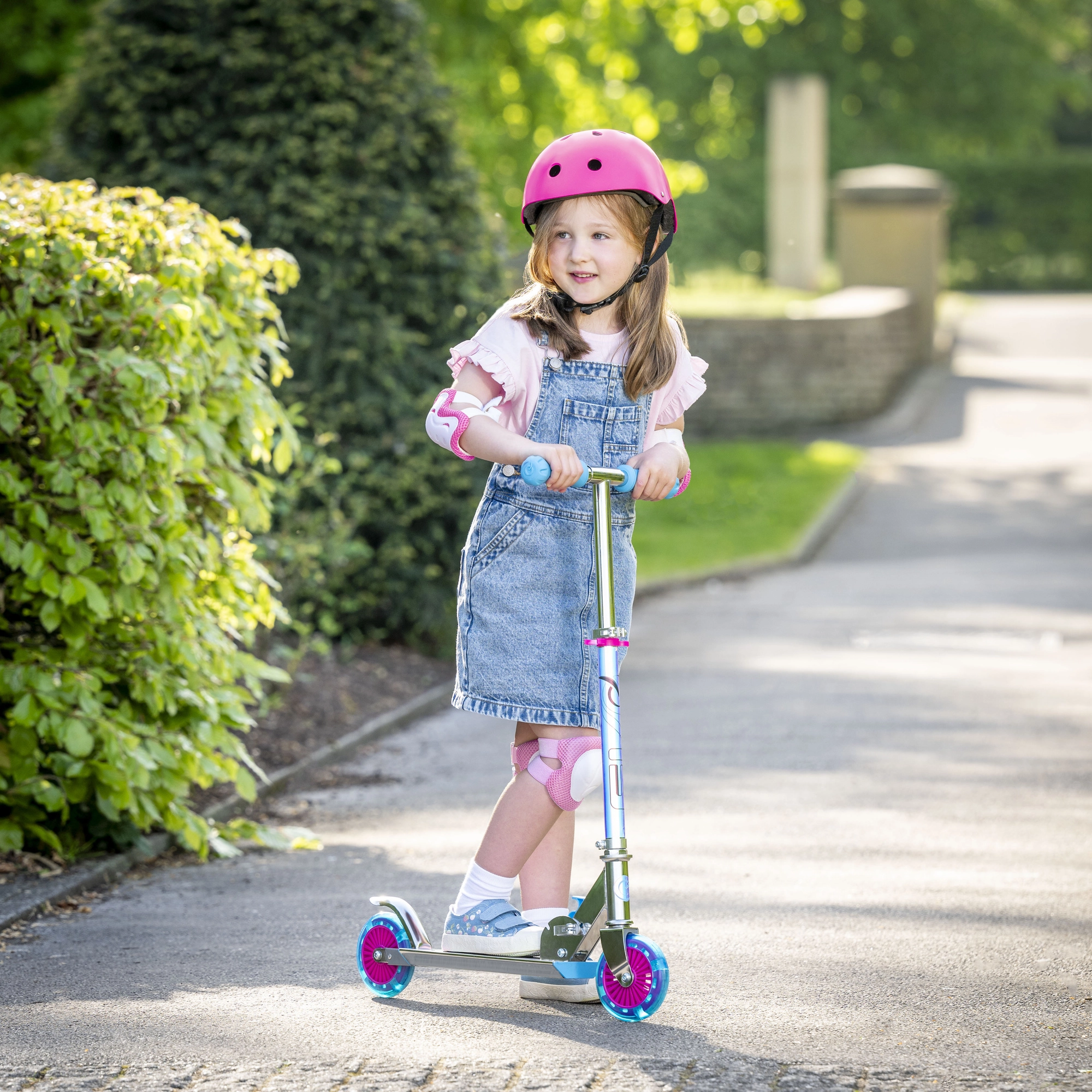 Właściwości jezdne poprawiają gumowe koła z łożyskami ABEC-5 dla cichej i płynnej jazdy rekreacyjnej. Tylny błotnik pełni funkcję hamulca nożnego, który zapewnia niezawodne spowalnianie. Hulajnoga jest idealna dla dzieci od 5 lat i wspiera równowagę, koordynację oraz zdrowy ruch.