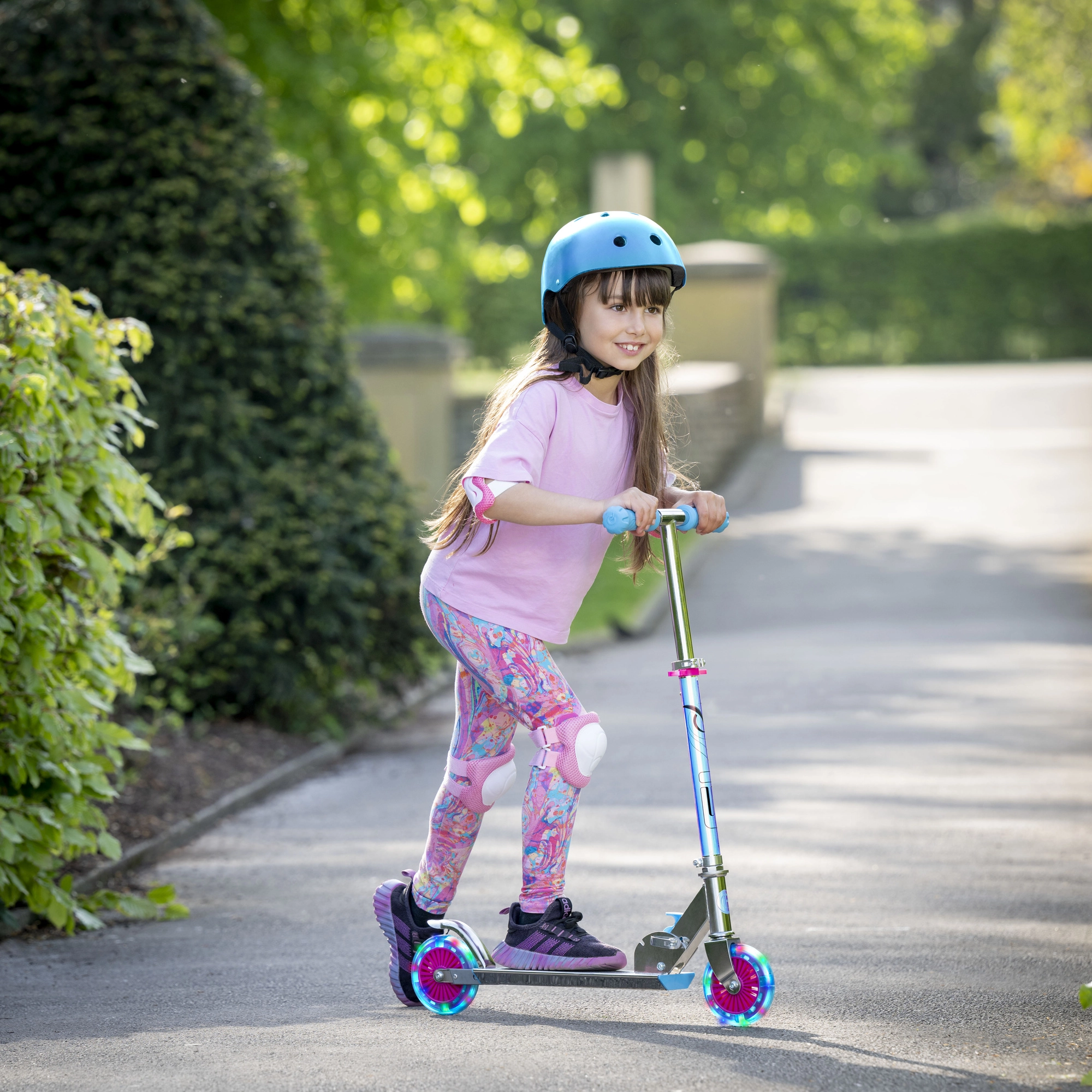 Kolorowe diody LED zapalają się podczas jazdy i zamieniają każdą przejażdżkę w przygodę. Dzieci będą lepiej widoczne, a jazda stanie się dla nich jeszcze atrakcyjniejsza.