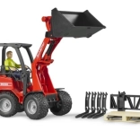 W zestawie widły i paleta, a także figurka z ruchomymi kończynami, która urozmaica doznanie z zabawy.