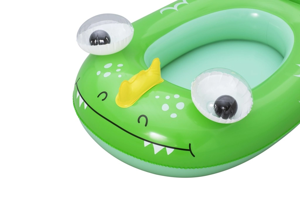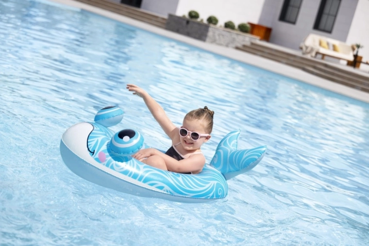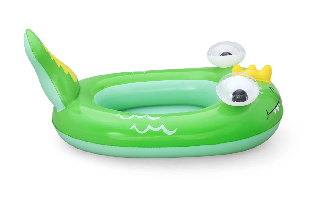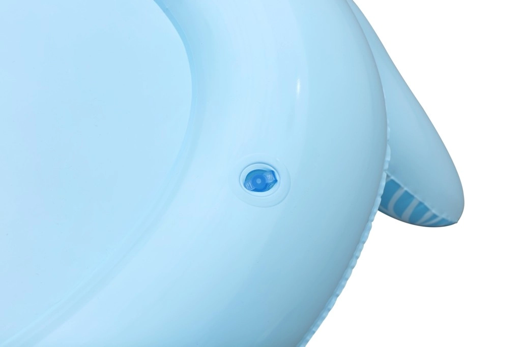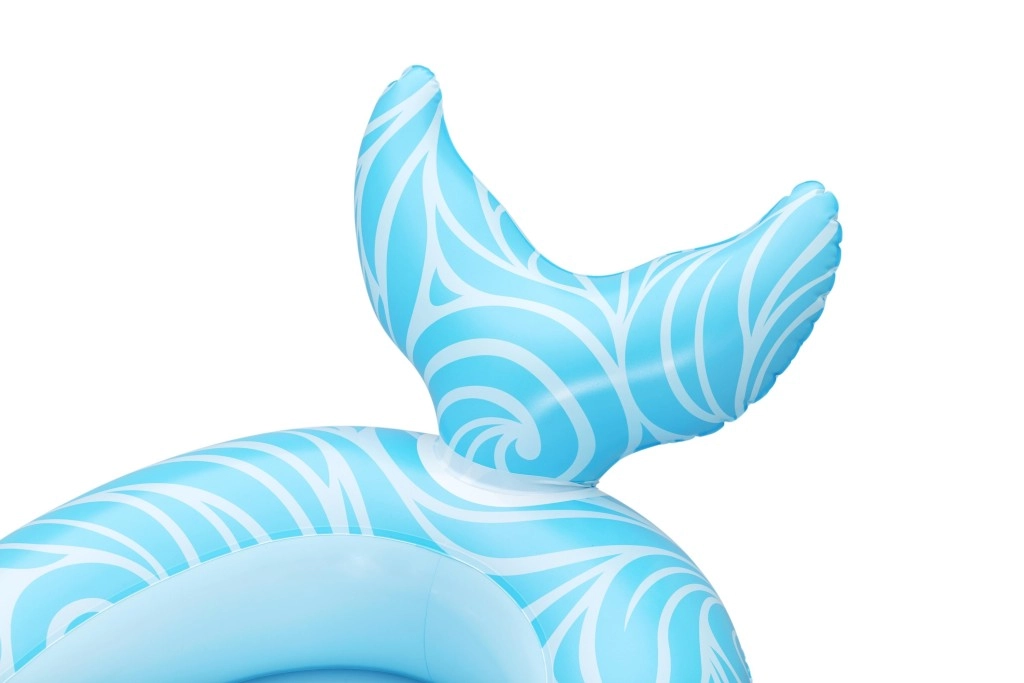 Każdy motyw ma własne, zabawne detale: niebieski wieloryb z białymi spiralami i oczami 3D, zielony smok z wyrazistymi oczami i żółtymi akcentami oraz żółto–turkusowa łódź podwodna z białą śrubą dla jeszcze większej frajdy. Zawory bezpieczeństwa umożliwiają szybkie pompowanie i spuszczanie powietrza – idealne dla rodzin w podróży i na weekendowe kąpiele.