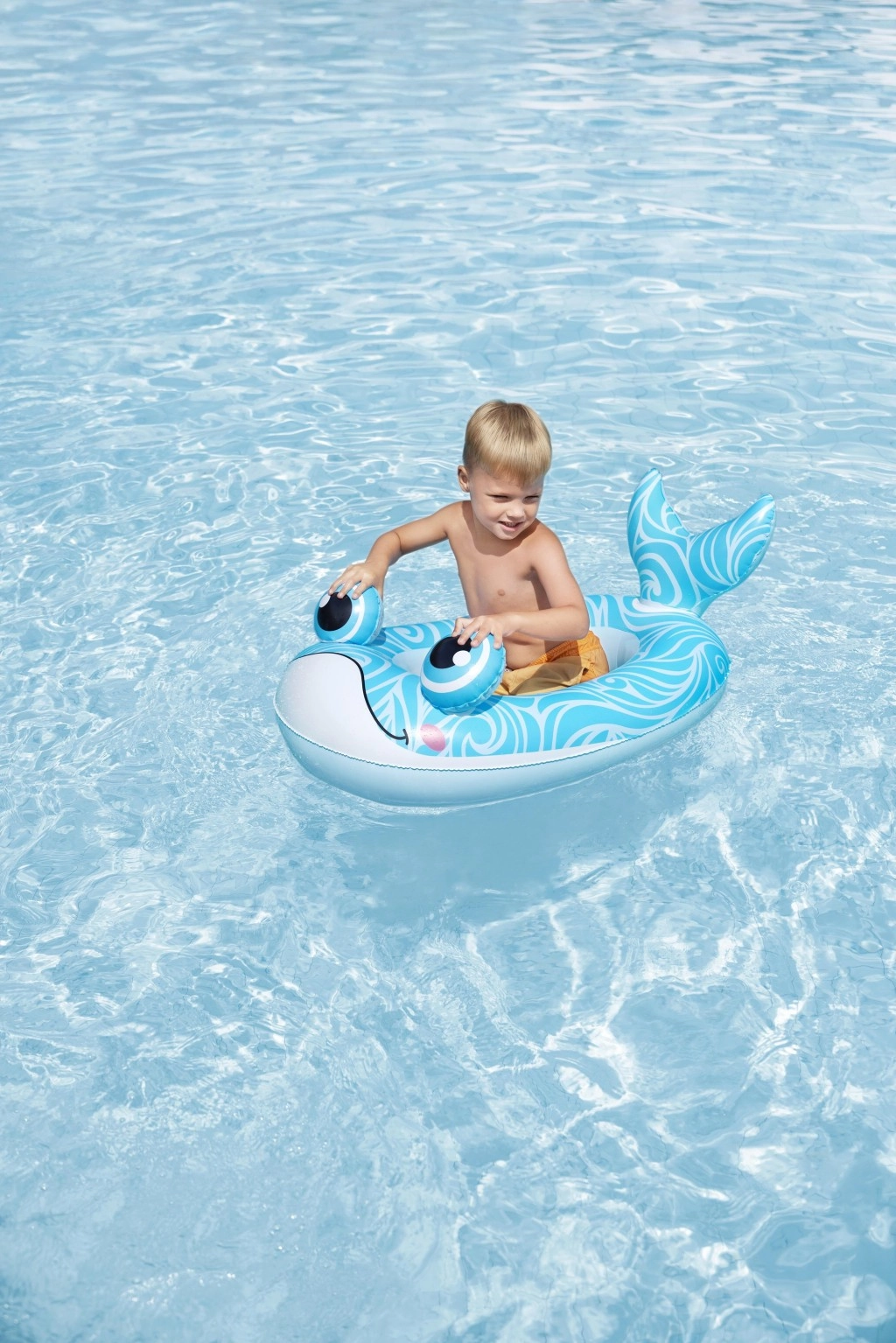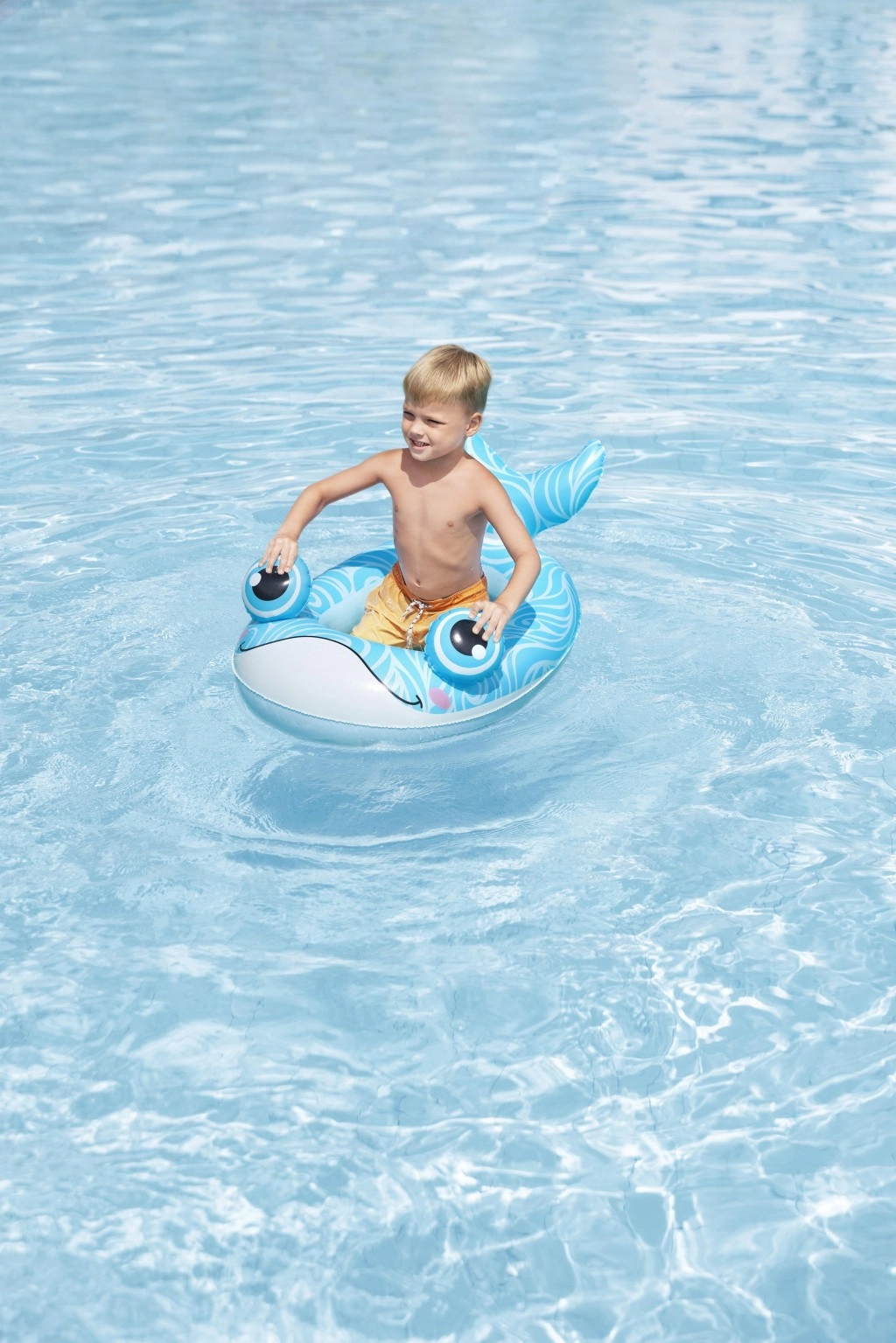Wyraziste kolory, ozdobna płetwa i duże oczy pobudzają wyobraźnię. Stabilna konstrukcja z mocnego PVC utrzymuje kształt i wyporność.
