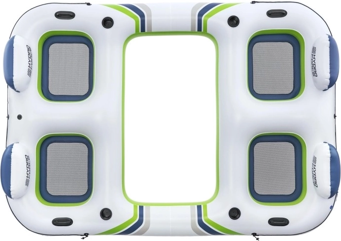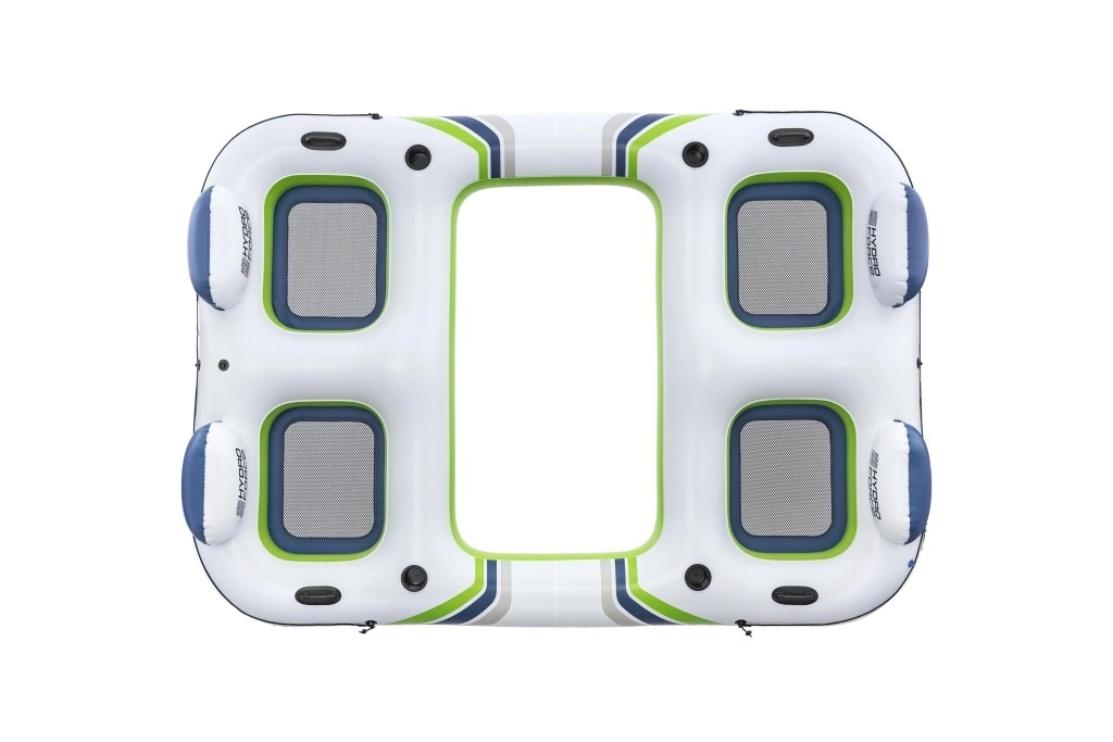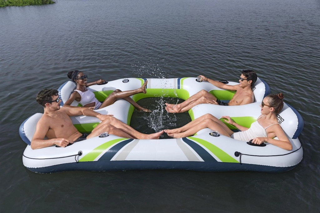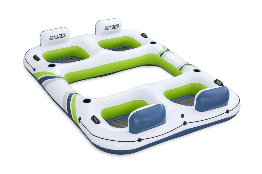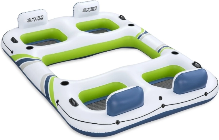Duża nadmuchiwana wyspa HYDRO‑FORCE jest idealna do leniuchowania na jeziorze, nad morzem lub w basenie. Cztery ergonomiczne siedziska z siatką przyjemnie chłodzą nogi, a centralny otwór pozwala na orzeźwienie o każdej porze dnia. Dzięki kilku komorom powietrznym, solidnym rączkom i linie dookoła wsiadanie i manewrowanie w wodzie są łatwe i stabilne.