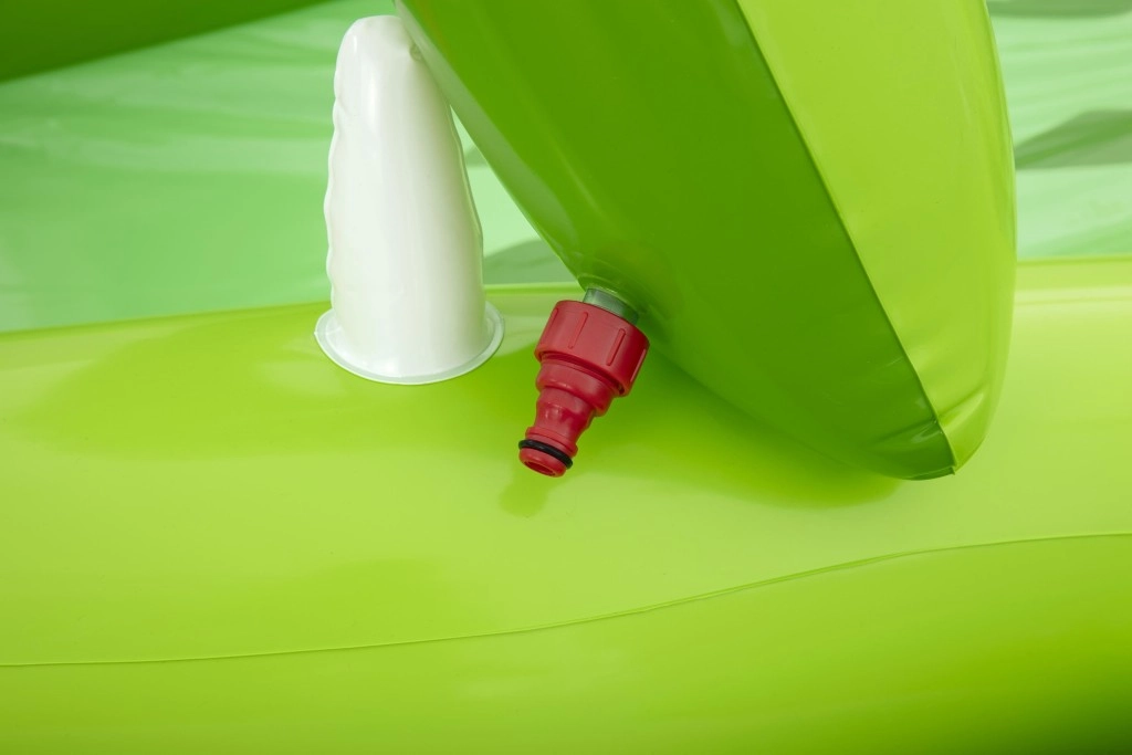 Wytrzymały winyl jest łatwy w utrzymaniu, a dzięki wielu zaworom cały basen szybko się pompuje i spuszcza powietrze. Kompaktowe wymiary ułatwiają ustawienie w ogrodzie lub na tarasie, a pojemność wody jest idealna do bezpiecznego brodzenia.