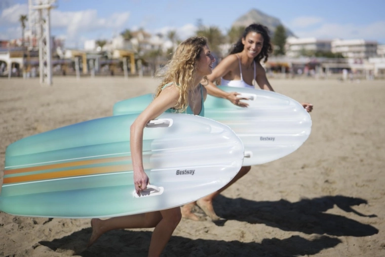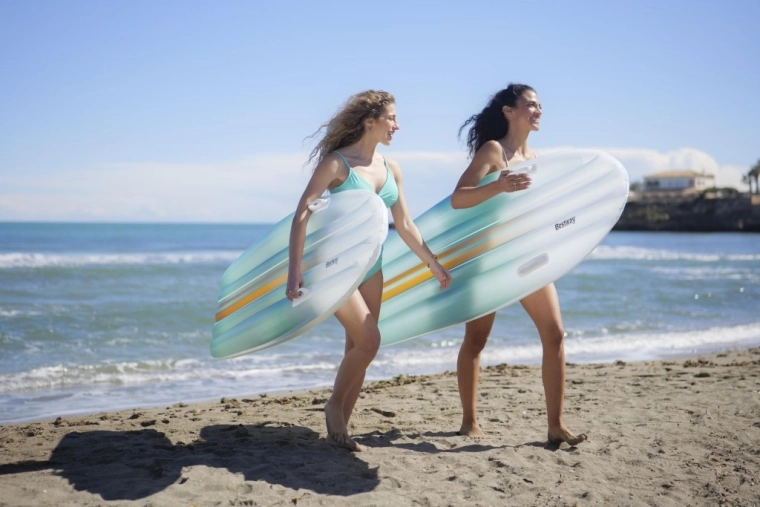 Wewnętrzne komory z belkami nośnymi zapewniają sztywność, lepsze podparcie ciała i komfortowe leżenie na wodzie – idealne do relaksu i na delikatne fale.