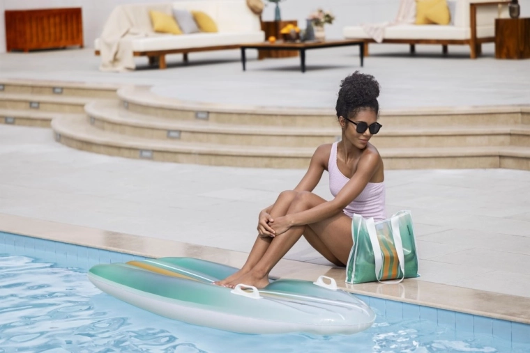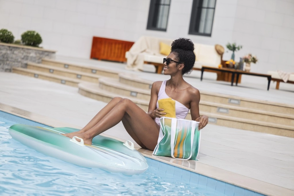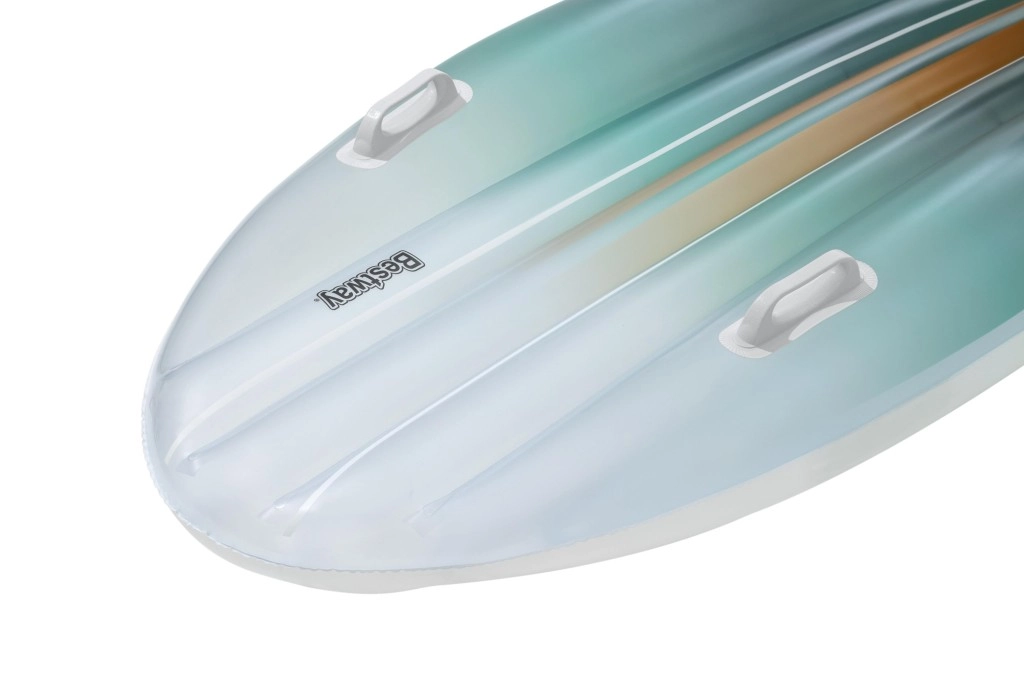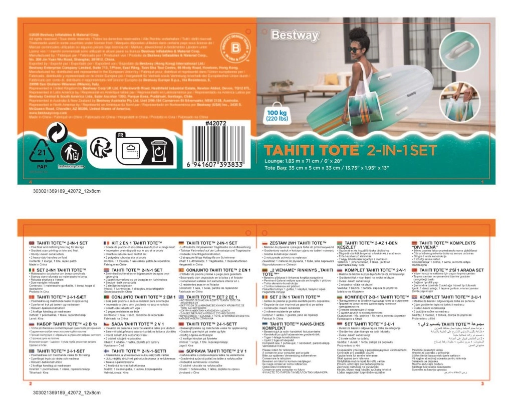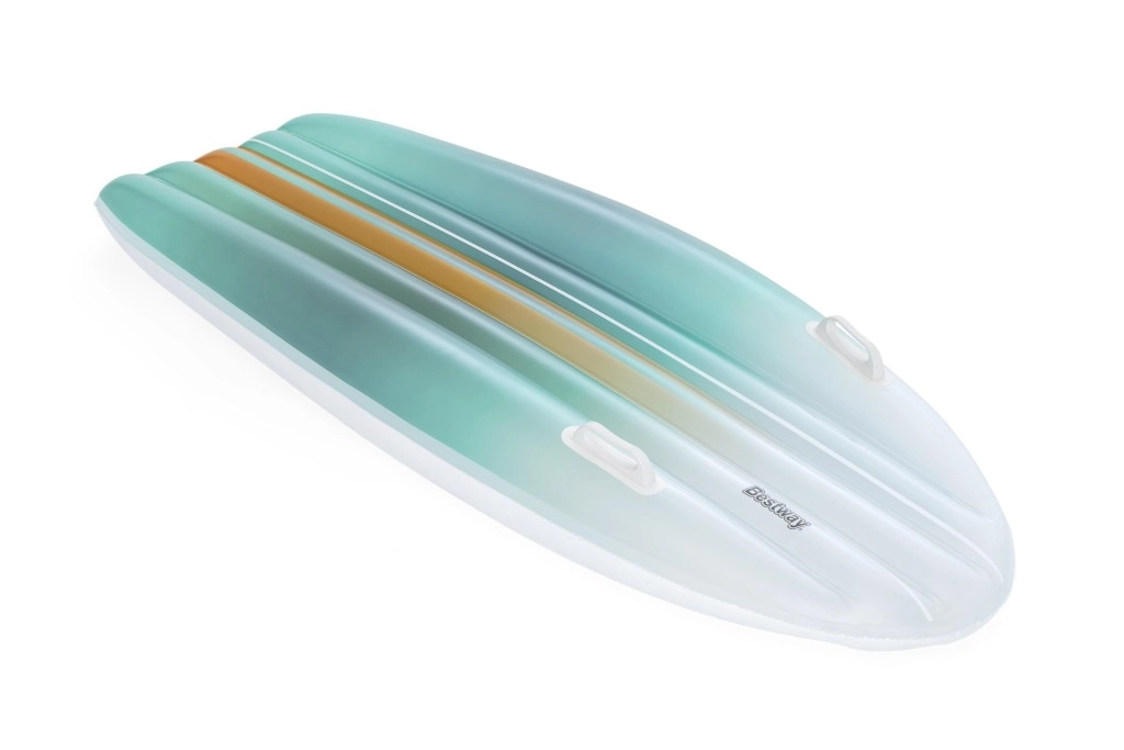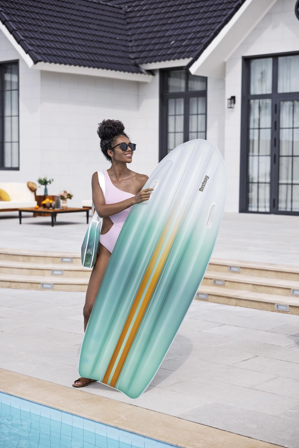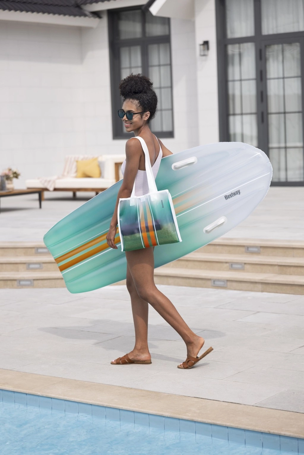 Zestaw BESTWAY TAHITI łączy praktyczność i styl dla beztroskiego wypoczynku nad wodą. Leżak o hydrodynamicznym kształcie z dwoma zintegrowanymi uchwytami zapewnia pewność podczas wsiadania i w trakcie relaksu. Spójny cyjanowy gradientowy nadruk na leżaku i torbie wygląda świeżo i letnio – wyróżnisz się przy basenie i na plaży.