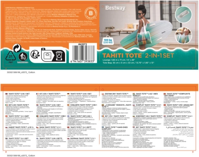Ciesz się latem w pełni z zestawem BESTWAY TAHITI 2w1 – komfortowym dmuchanym leżakiem z solidnymi uchwytami oraz pojemną torbą plażową w spójnym wzornictwie. Stabilna konstrukcja I‑beam, szybkie pompowanie jedną komorą powietrzną i udźwig do 100 kg sprawiają, że ten zestaw to idealny wybór nad basen, jezioro i morze.
