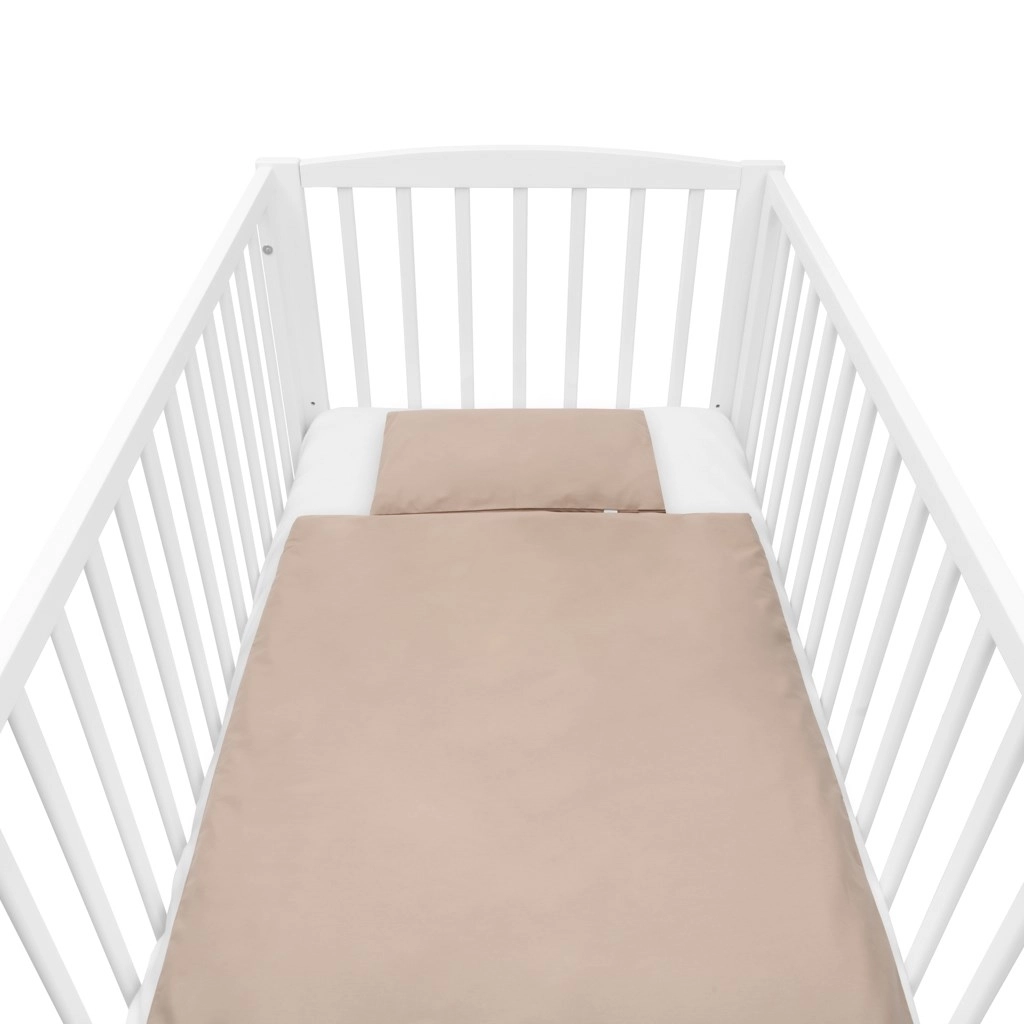 Mięciutki dziecięcy zestaw do łóżeczka w kolorze cappuccino zawiera poduszkę i kołderkę z antyalergicznym wypełnieniem. Poszycie z 100% bawełny jest delikatne dla wrażliwej skóry, wypełnienie o wysokości 3 cm pięknie grzeje także w chłodniejsze dni. Praktyczna łatwa pielęgnacja – pranie w pralce.