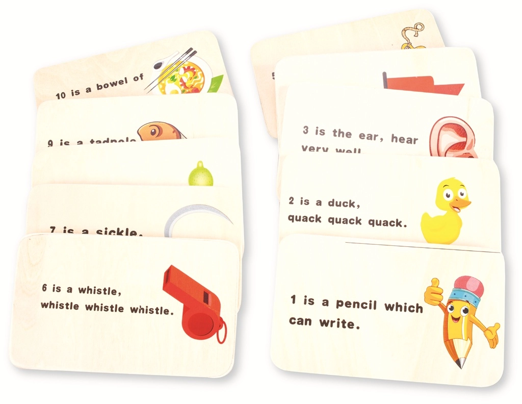 Ten inspirowany metodą montessori zestaw rozwija u dzieci kluczowe umiejętności – rozpoznawanie liczb, liczenie, koordynację oko–ręka oraz motorykę małą. Drewniane tabliczki z otworami i kolorowe kołeczki/kulki prowadzą dzieci do naturalnego zrozumienia ilości, porównywania i sortowania. Karty z ilustracjami i rymowankami w języku angielskim dodają element zabawy i poszerzają angielskie słownictwo.