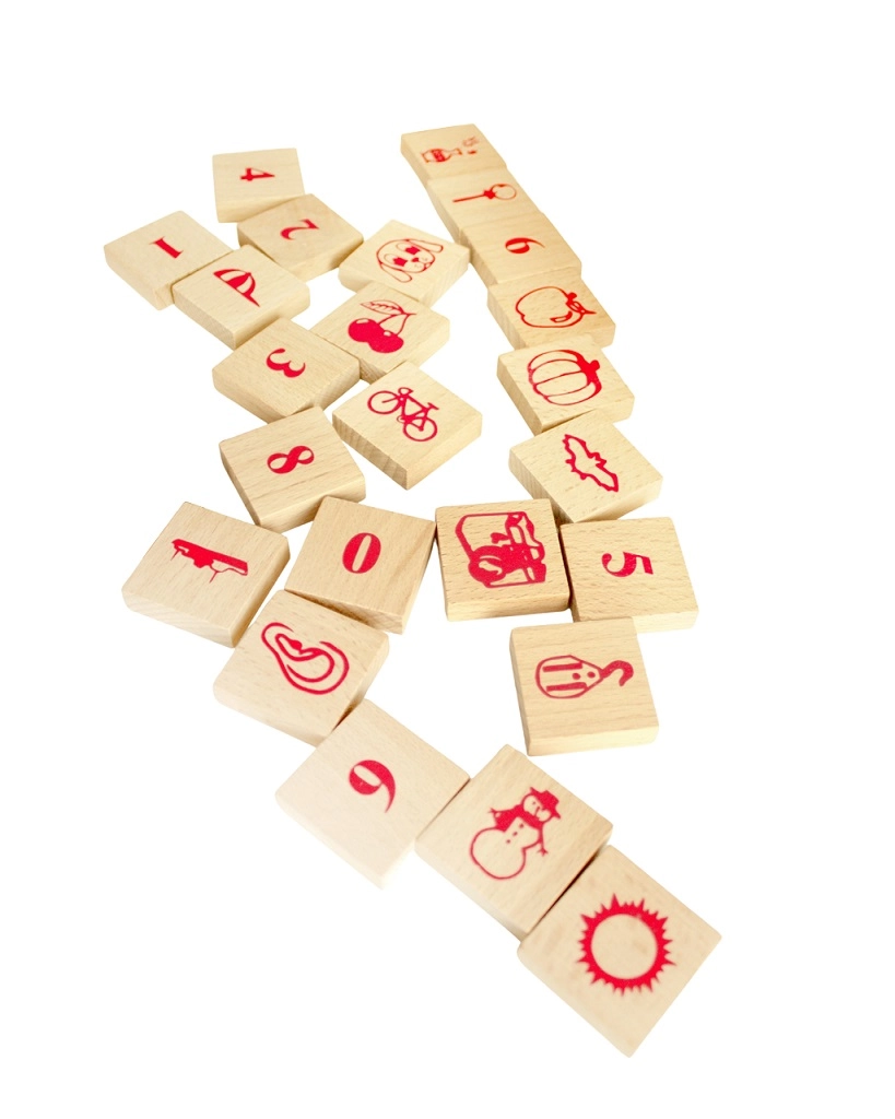 Wybrane elementy z nadrukiem wspierają poznawanie alfabetu, cyfr i prostych ikon – świetne do pierwszego liczenia i układania słów.