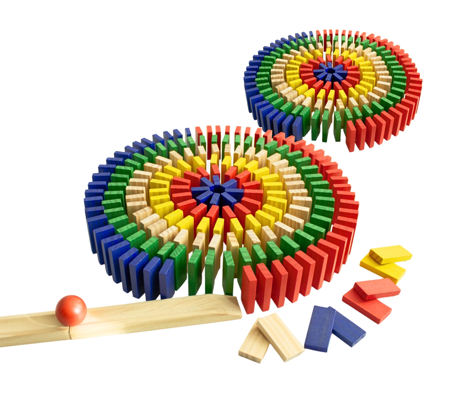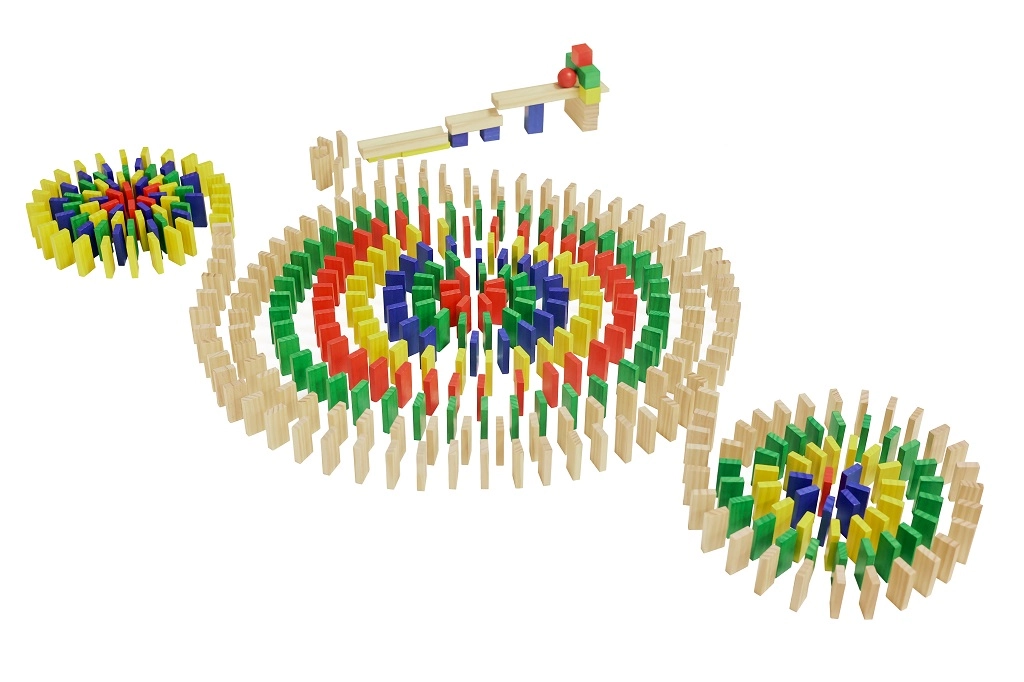 W zestawie znajduje się drewniana rampa i kulka do efektownego startu domina. Obserwuj płynne i stabilne przewracanie.