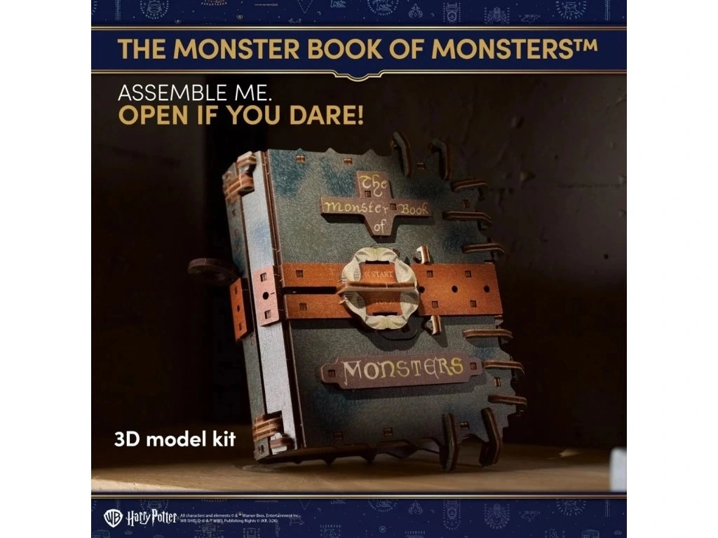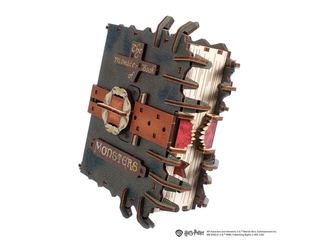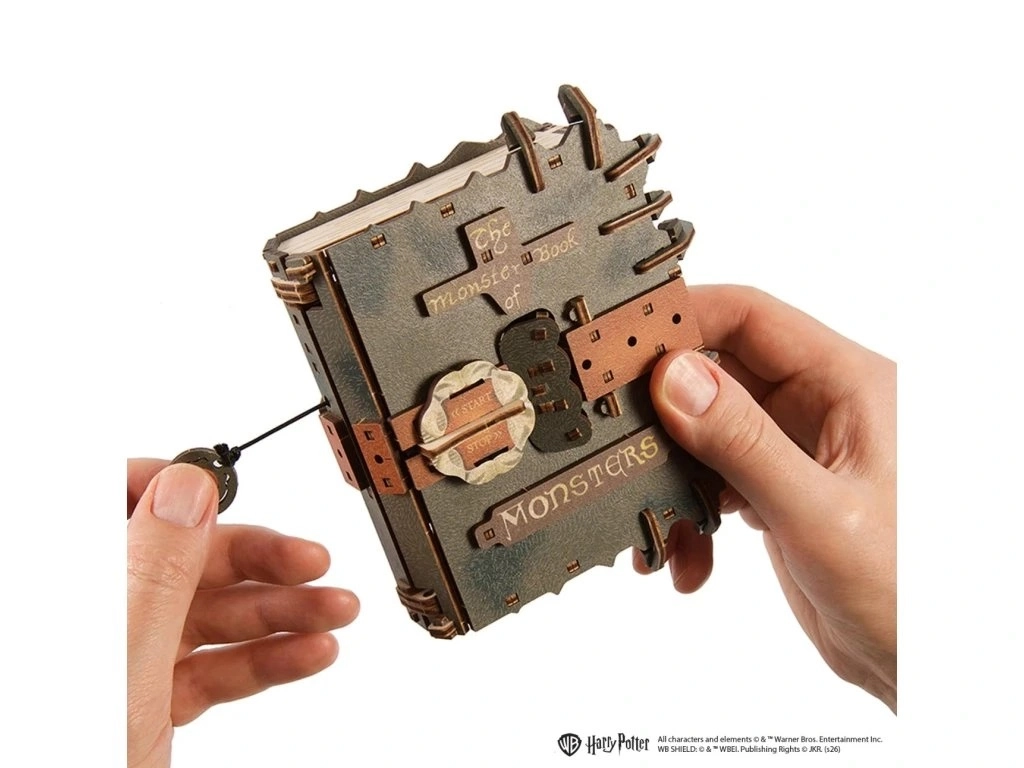 Odkryj magiczny model dla fanów HARRY POTTER – drewnianą układankę 3D UGEARS inspirowaną książką Monster Book of Monsters. Po złożeniu książka naprawdę się porusza: za pomocą sznurka napędowego rusza po gładkiej powierzchni, otwiera i zamyka „zęby”, a oczy wyskakują po aktywacji mechanizmu. Elementy są precyzyjnie wycinane laserowo i składają się bez kleju, dzięki czemu otrzymasz autentyczną, ruchomą dekorację oraz sprytną techniczną zabawkę, wspierającą logiczne myślenie.