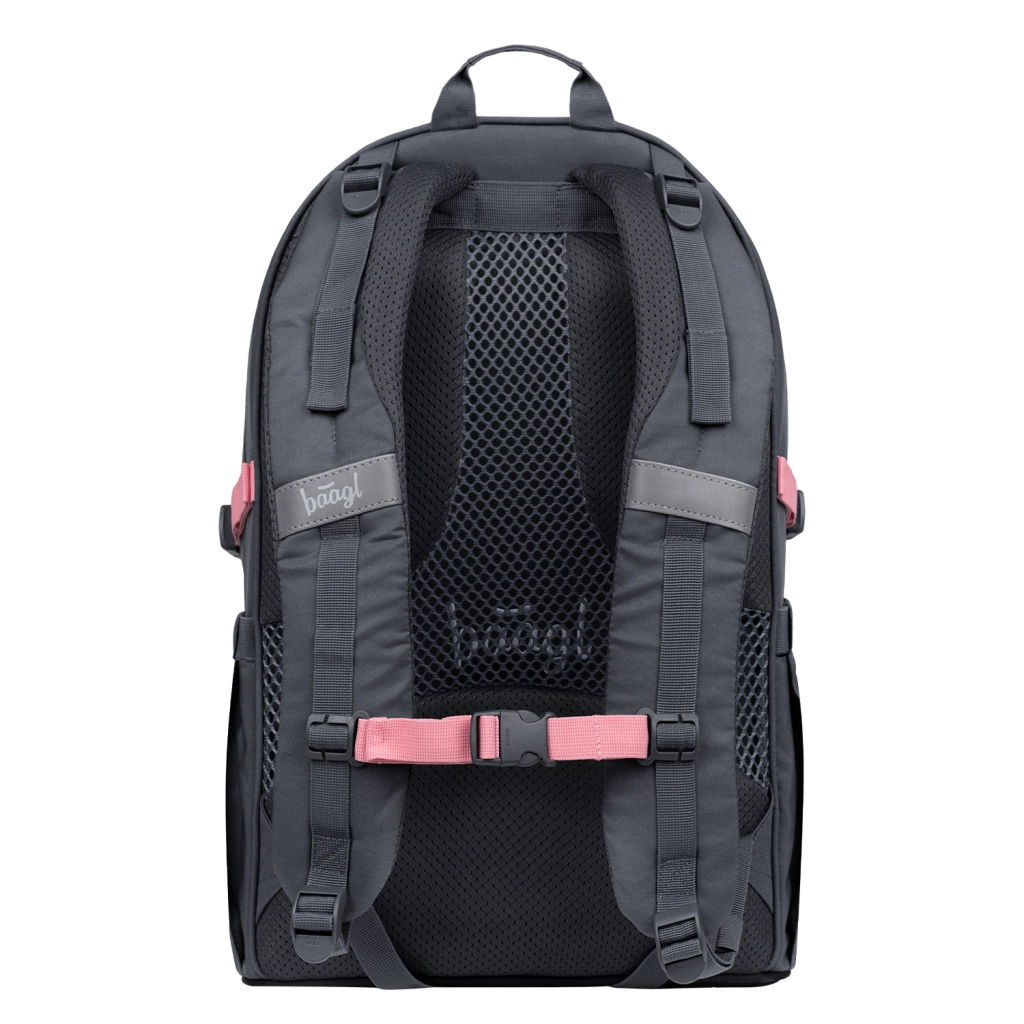 Szkolny plecak BAAGL Core Logo w różowym kolorze został zaprojektowany dla wygodnego i zdrowego noszenia szkolnych przyborów. Dzięki ergonomicznemu designowi, regulowanym szelkom oraz anatomicznie ukształtowanym plecom z wentylacją zapewnia równomierne rozłożenie obciążenia podczas codziennego użytkowania. Niska waga 900 g i pojemność 25 l czynią go idealnym wyborem dla uczniów od 3. klasy.